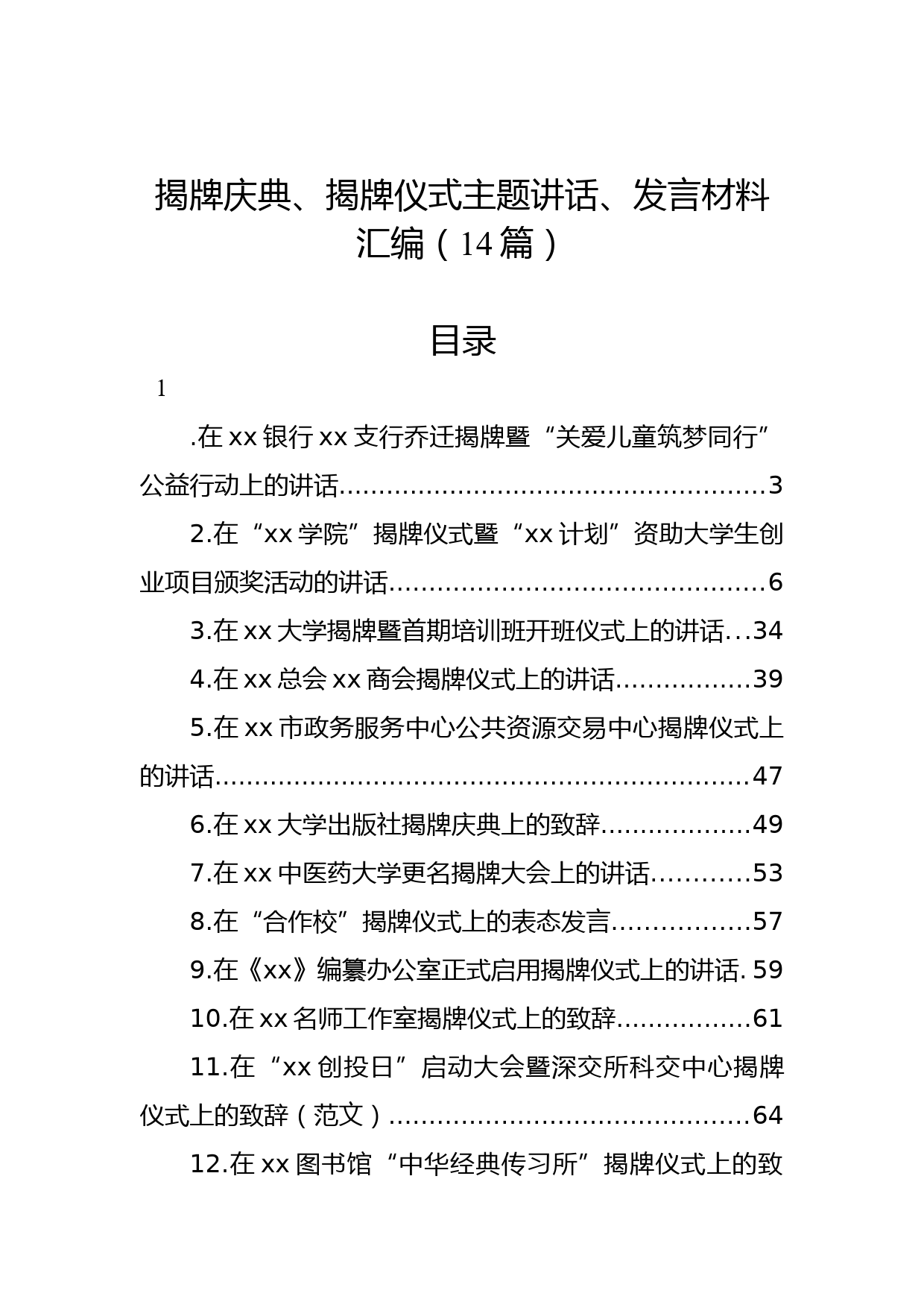 揭牌慶典、揭牌儀式主題講話、發(fā)言材料匯編(14篇)VIP免費(fèi)