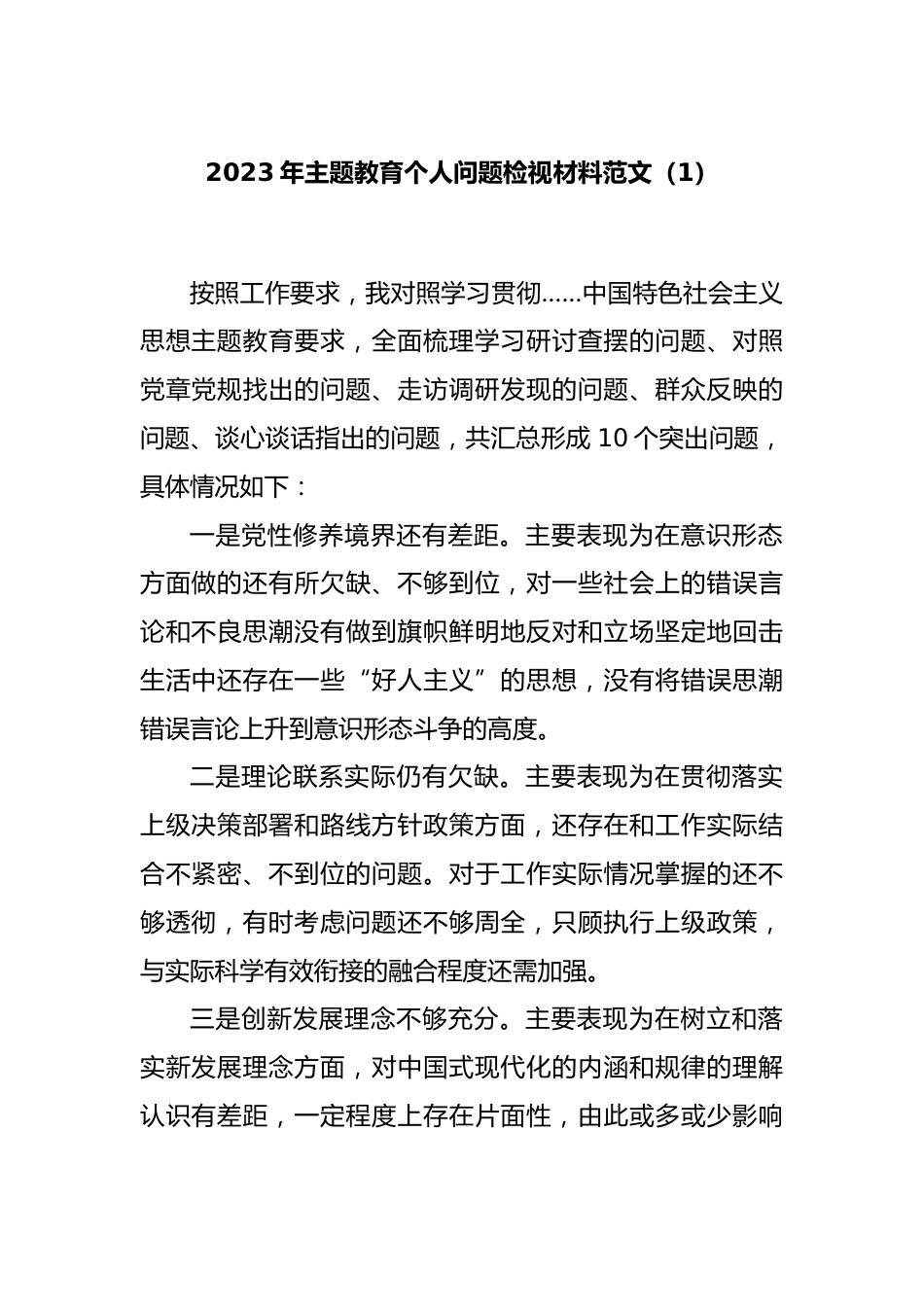 2023年主題教育個(gè)人問題檢視材料范文(1)VIP免費(fèi)