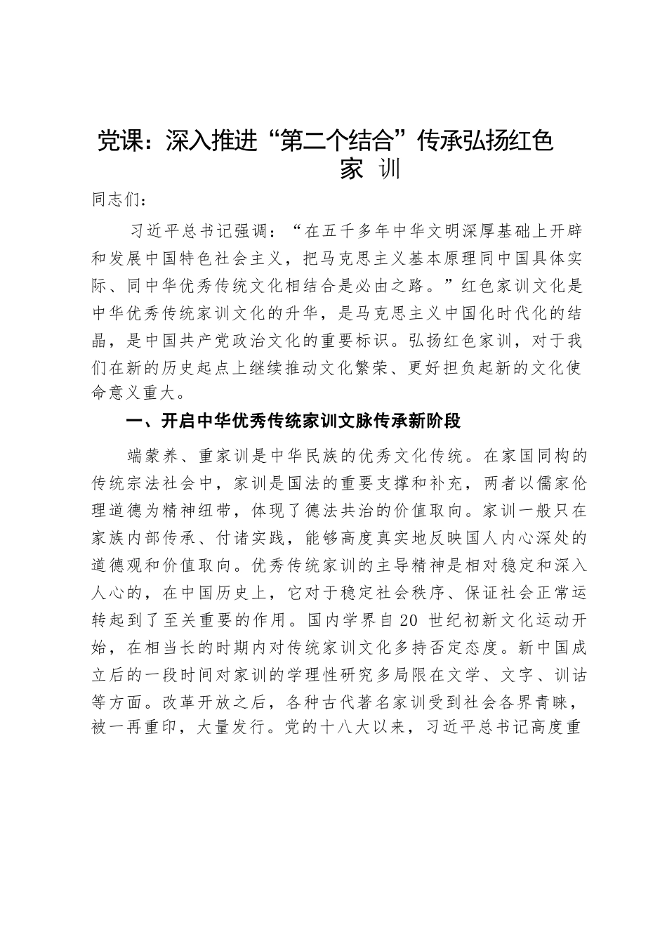 黨課:深入推進(jìn)“第二個(gè)結(jié)合”傳承弘揚(yáng)紅色家訓(xùn)VIP免費(fèi)