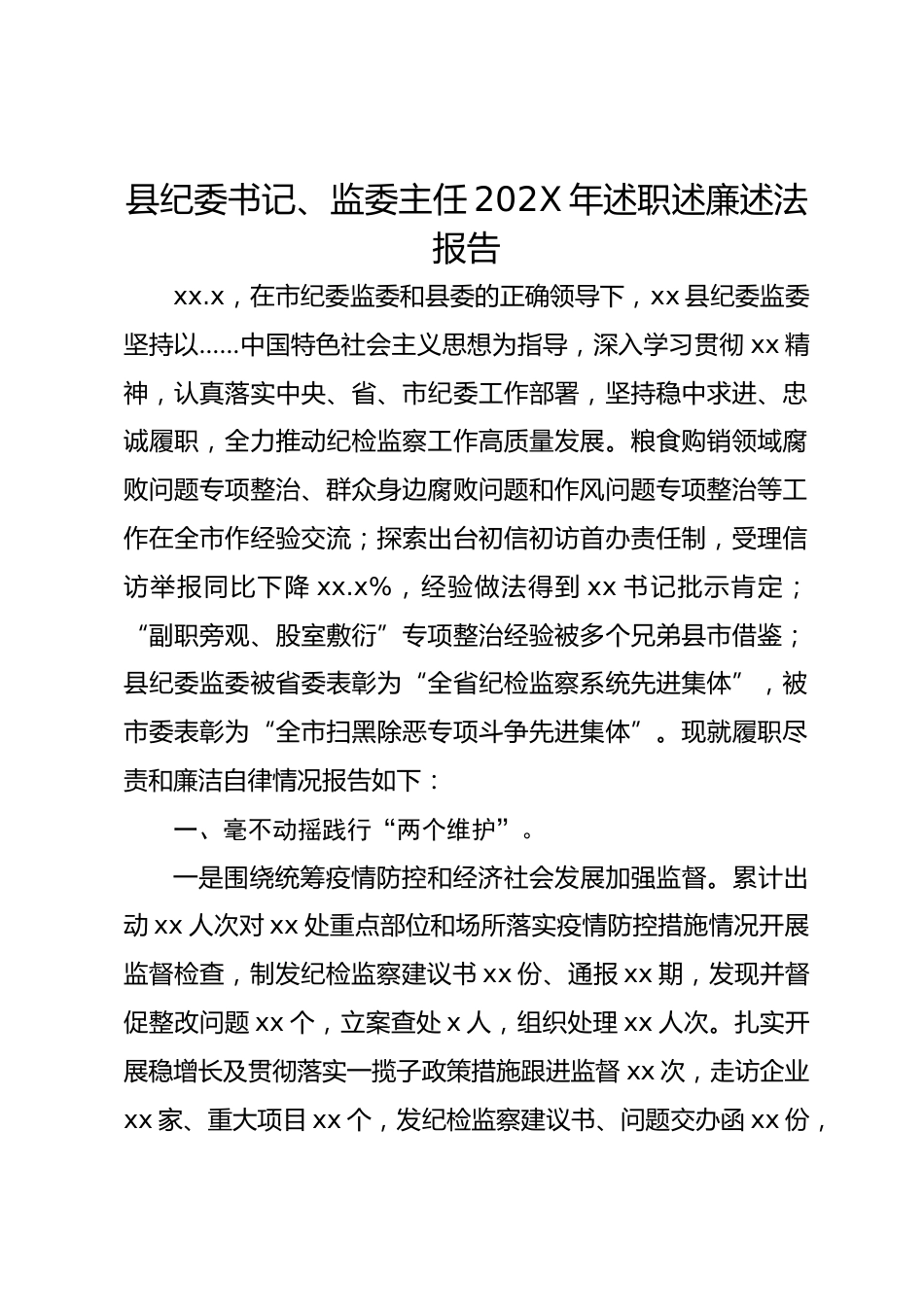 縣紀(jì)委書記、監(jiān)委主任202X年述職述廉述法報(bào)告VIP免費(fèi)