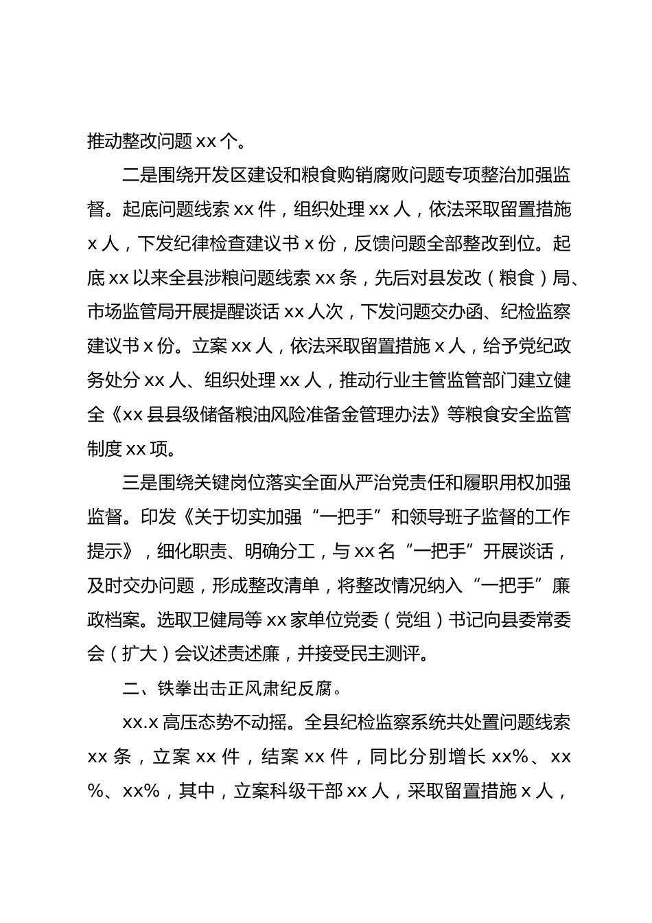 縣紀(jì)委書記、監(jiān)委主任202X年述職述廉述法報(bào)告xx.x,在市紀(jì)委監(jiān)委和縣委的正確領(lǐng)導(dǎo)下,xx縣紀(jì)委監(jiān)委堅(jiān)持以……中國(guó)特色社會(huì)主義思想為指導(dǎo),深入學(xué)習(xí)貫徹xx精神,認(rèn)真落實(shí)中央、省、市紀(jì)委工作部署,堅(jiān)持穩(wěn)中求進(jìn)、忠誠履職,全力推動(dòng)紀(jì)檢監(jiān)察工作高質(zhì)量發(fā)展。糧食購銷領(lǐng)域腐敗問題專項(xiàng)整治、群眾身邊腐敗問題和作風(fēng)問題專項(xiàng)整治等工作在全市作經(jīng)驗(yàn)交流;探索出臺(tái)初信初訪首辦責(zé)任制,受理信訪舉報(bào)同比下降xx.x%,經(jīng)驗(yàn)做法得到xx書記批示肯定;“副職旁觀、股室敷衍”專項(xiàng)整治經(jīng)驗(yàn)被多個(gè)兄弟縣市借鑒;縣紀(jì)委監(jiān)委被省委表彰為“全省紀(jì)檢監(jiān)察系統(tǒng)先進(jìn)集體”,被市委表彰為...