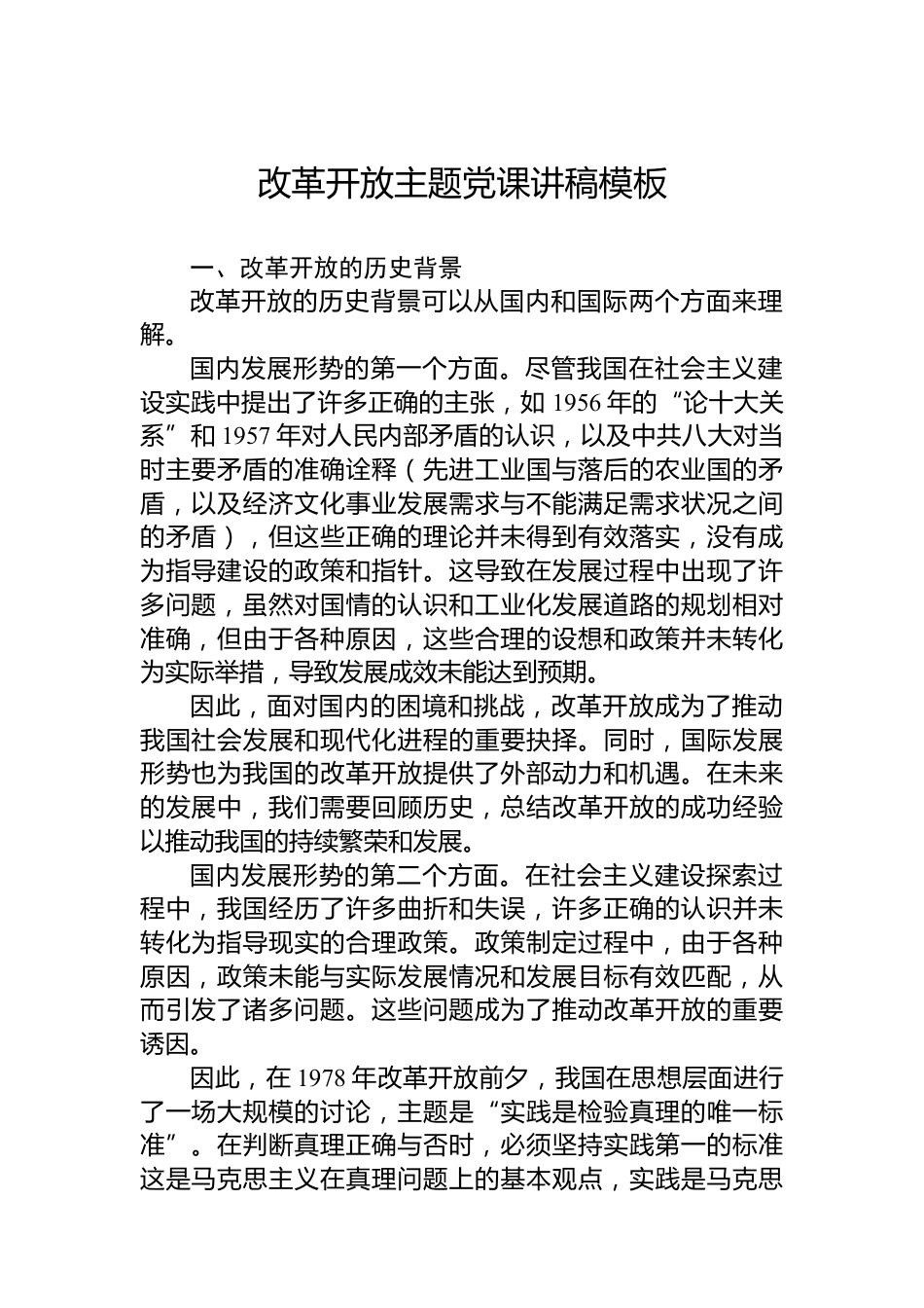 改革開放主題黨課講稿模板VIP免費