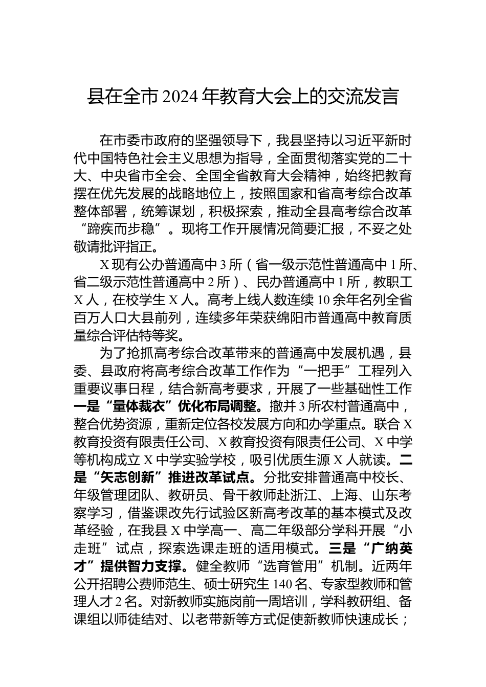 縣在全市2024年教育大會(huì)上的交流發(fā)言VIP免費(fèi)