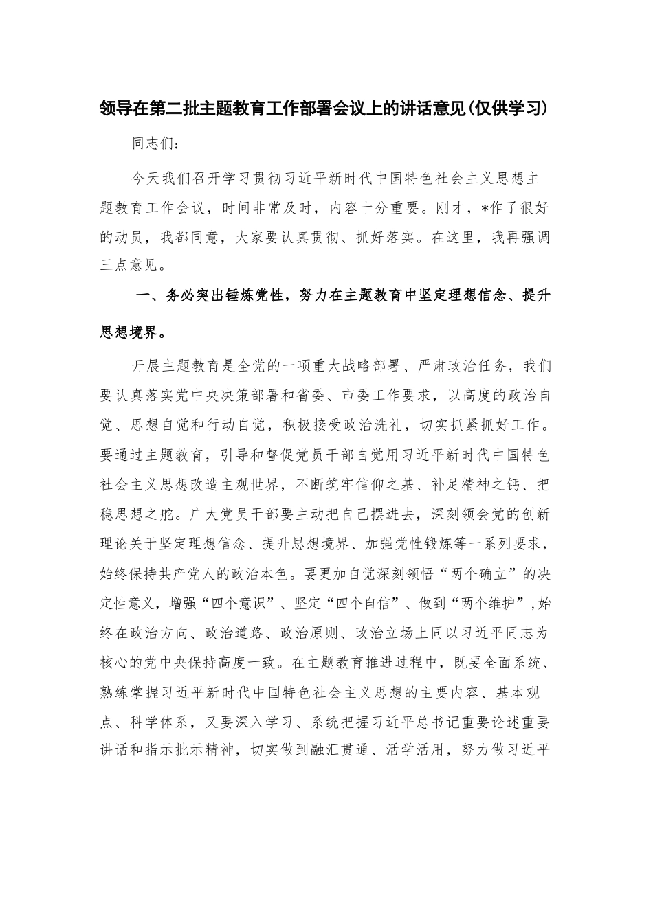 領導在第二批主題教育工作部署會議上的講話意見VIP免費
