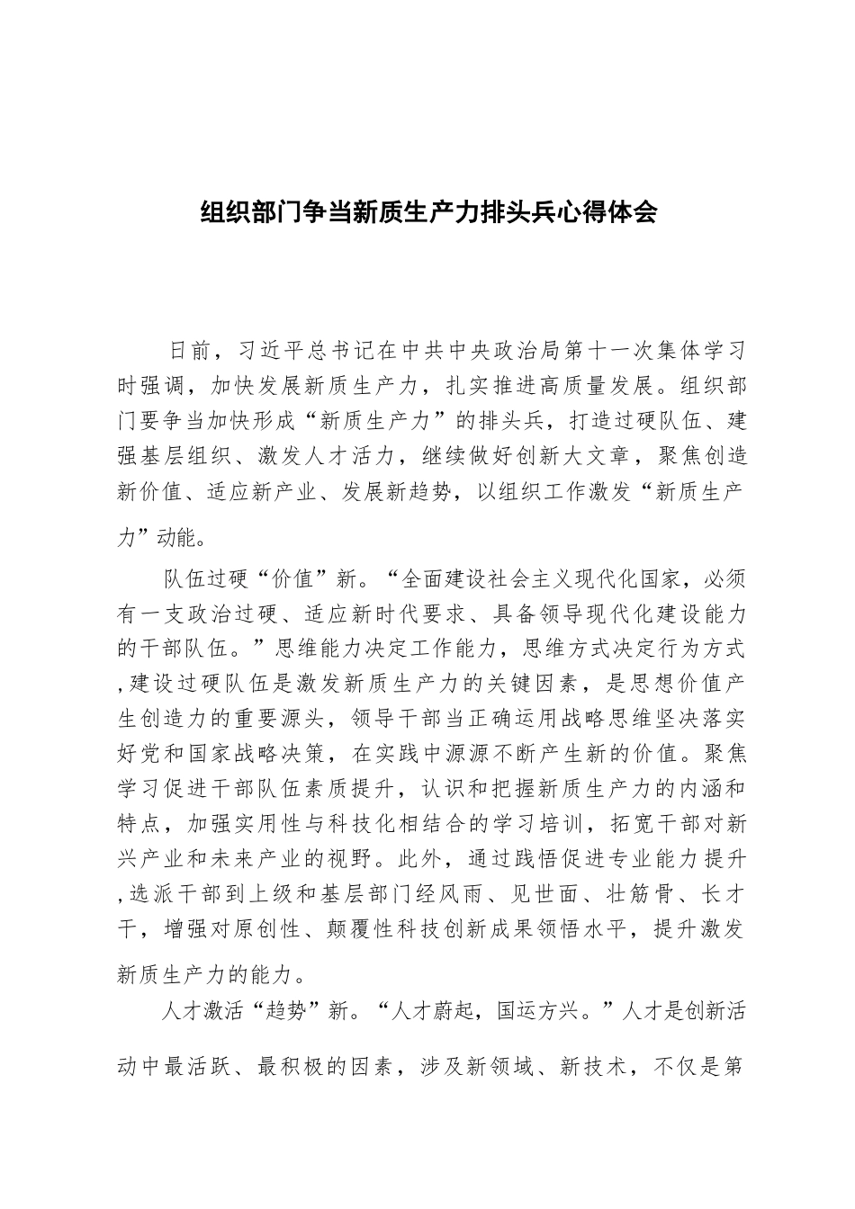 (2篇)2024年組織部門(mén)爭(zhēng)當(dāng)新質(zhì)生產(chǎn)力排頭兵心得感悟體會(huì)VIP免費(fèi)