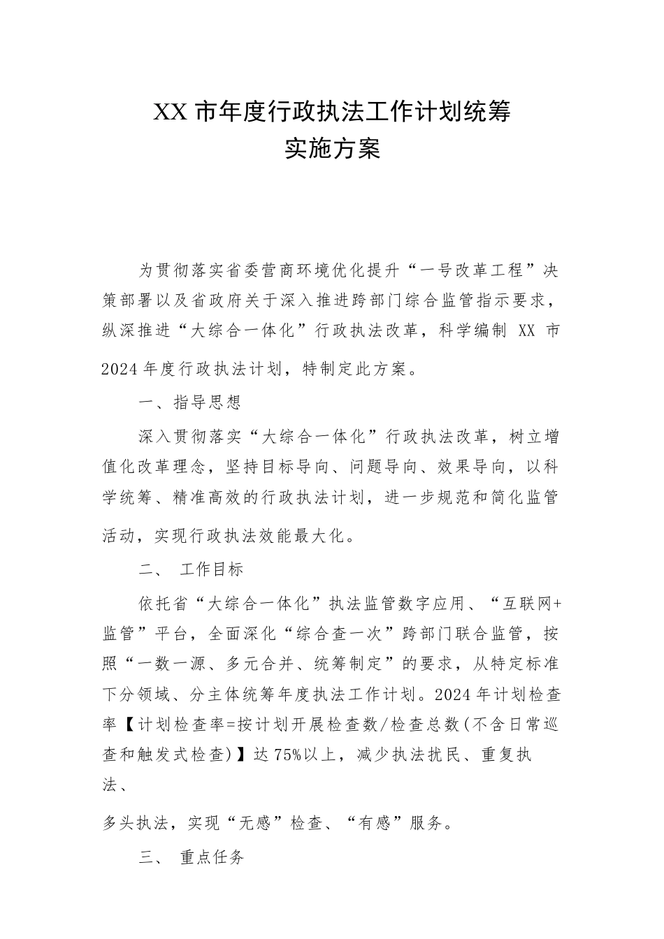 XX市年度行政執(zhí)法工作計(jì)劃統(tǒng)籌實(shí)施方案VIP免費(fèi)