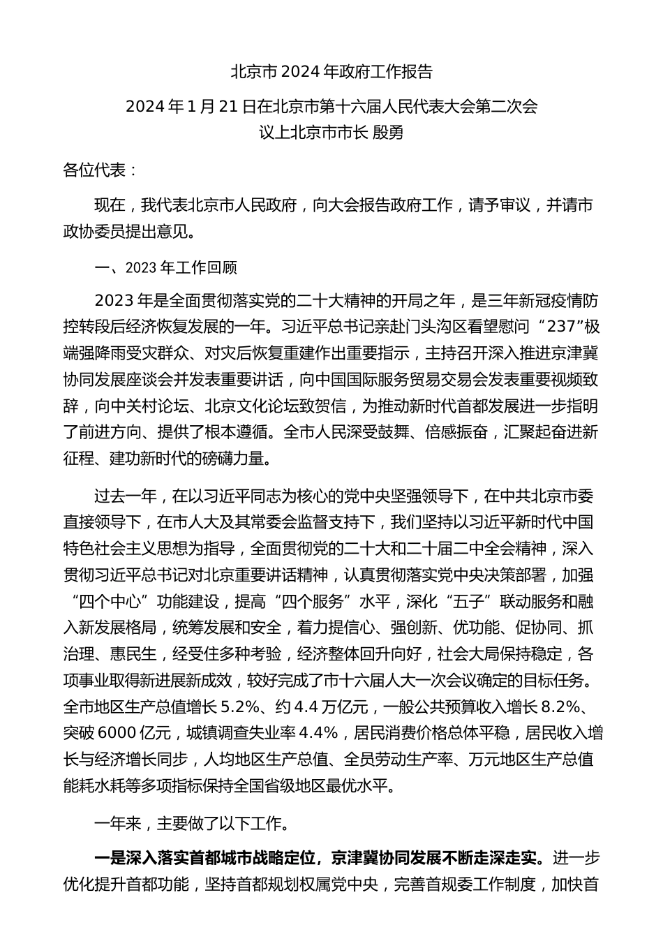 合集目錄1.北京市2024年政府工作報(bào)告.......................................12.天津市2024年政府工作報(bào)告.......................................193.上海市市2024年政府工作報(bào)告.....................................364.重慶市2024年政府工作報(bào)告.......................................555.河北省2024年政府工作報(bào)告.......................................786.山西省2024年政府工作報(bào)告.......................................917.遼寧省2024年政府工作報(bào)告.....................................1108.吉林省2024年政府工作報(bào)告................................