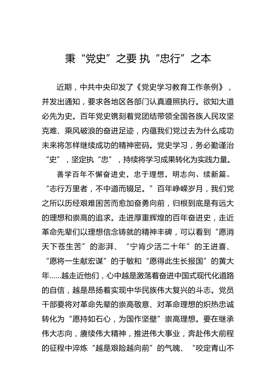 黨史教育學習心得:秉“黨史”之要 執(zhí)“忠行”之本VIP免費