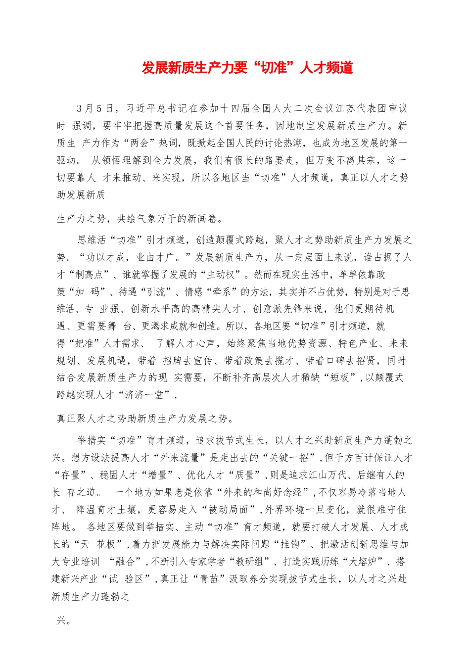2024年思想講課材料:發(fā)展新質(zhì)生產(chǎn)力要“切準(zhǔn)”人才頻道VIP免費(fèi)