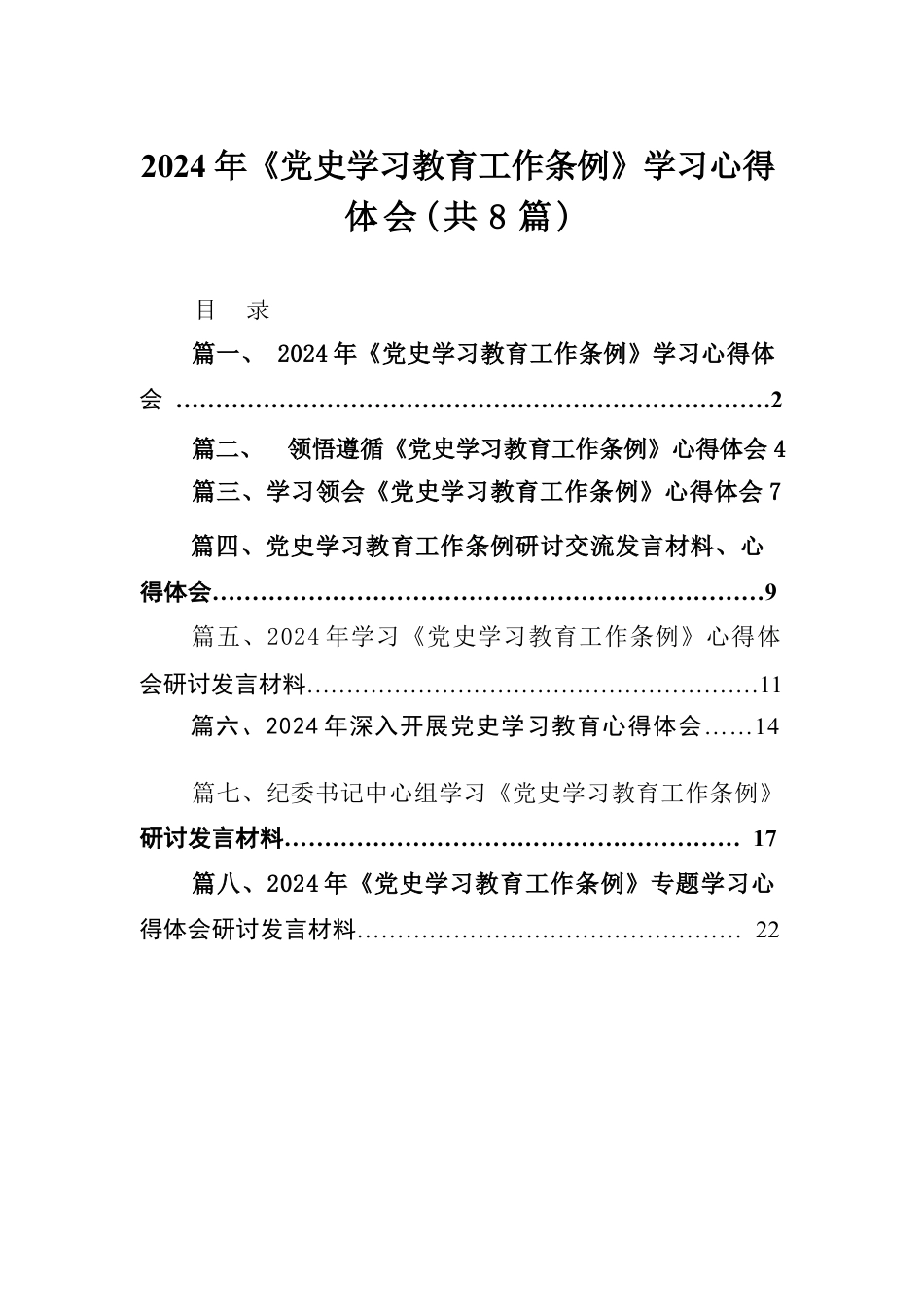 (8篇)2024年《黨史學(xué)習(xí)教育工作條例》學(xué)習(xí)心得體會(huì)范文VIP免費(fèi)