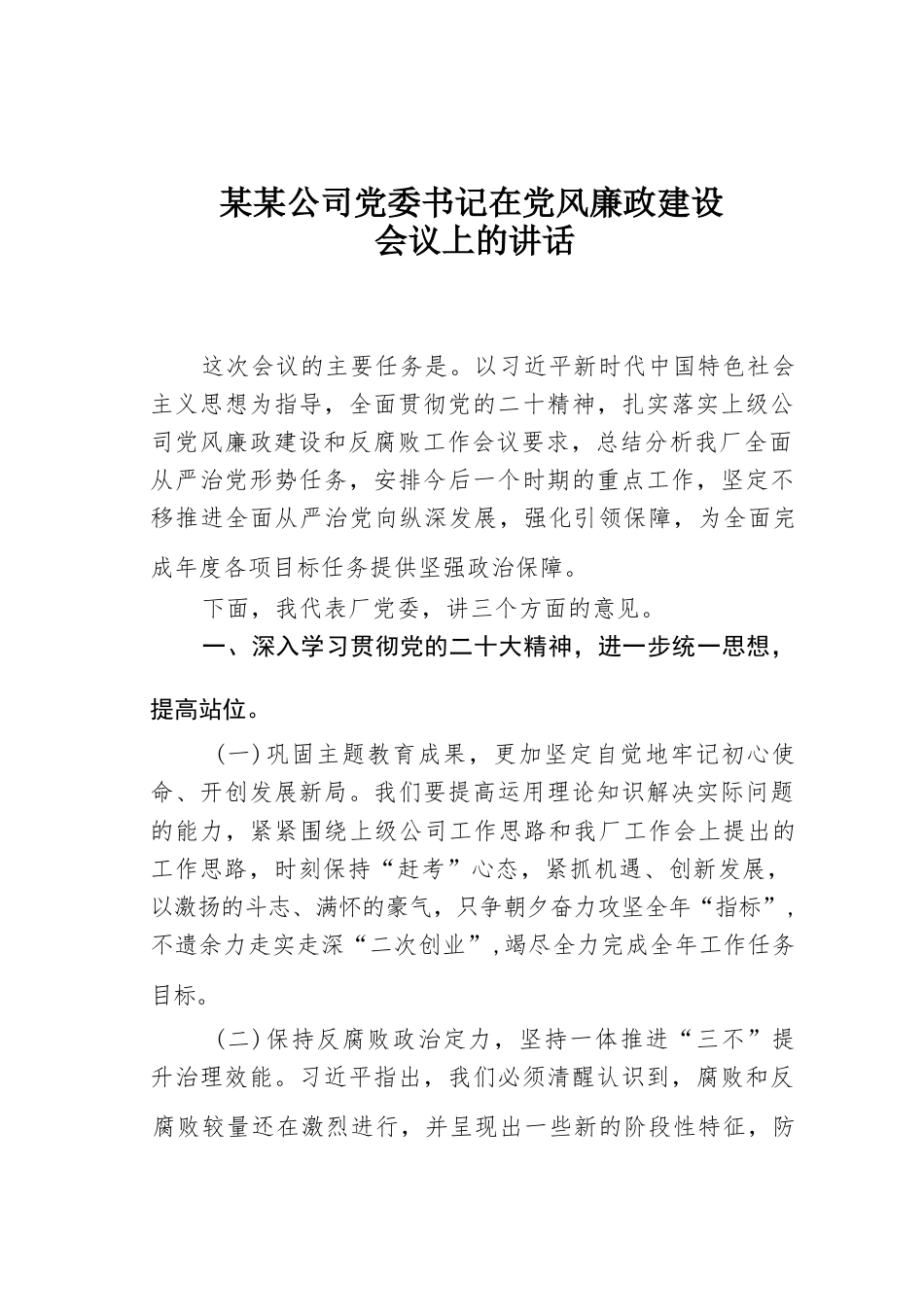 某某公司黨委書記在黨風(fēng)廉政建設(shè)會(huì)議上的講話VIP免費(fèi)