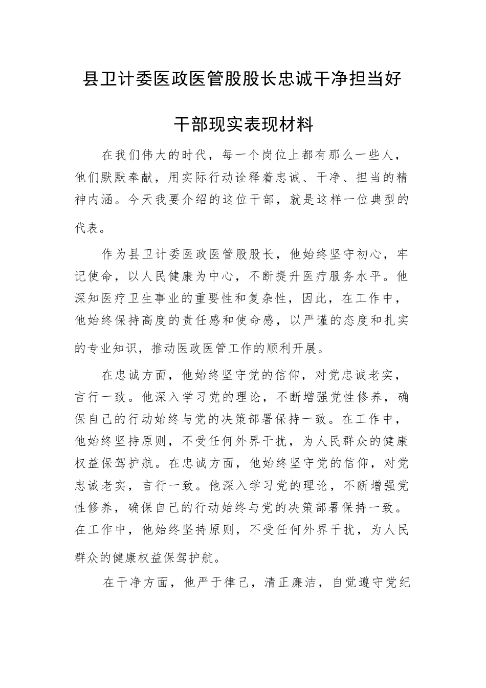 縣衛(wèi)計委醫(yī)政醫(yī)管股股長忠誠干凈擔當好干部現(xiàn)實表現(xiàn)材料VIP免費
