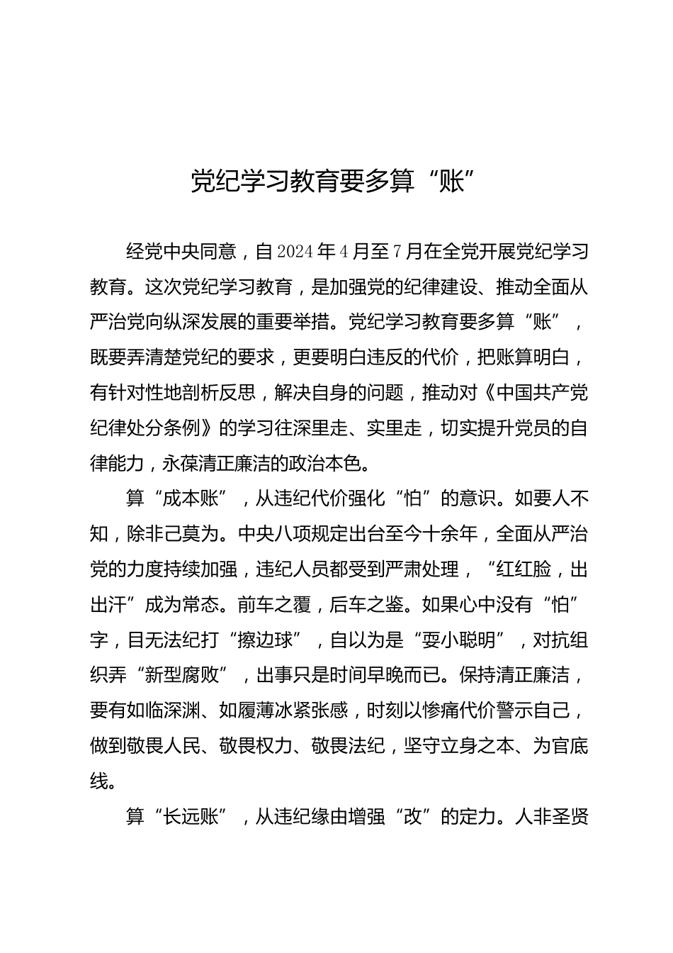 黨紀(jì)學(xué)習(xí)教育交流:20240404黨紀(jì)學(xué)習(xí)教育要多算“賬”VIP免費(fèi)