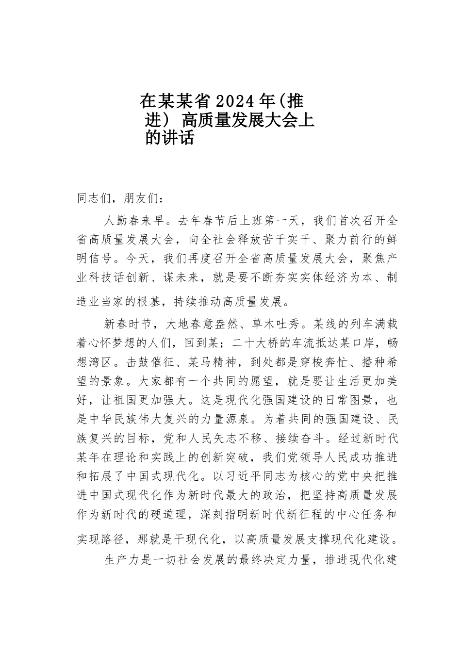 在某某省2024年(推進)高質(zhì)量發(fā)展大會上的講話(2)VIP免費