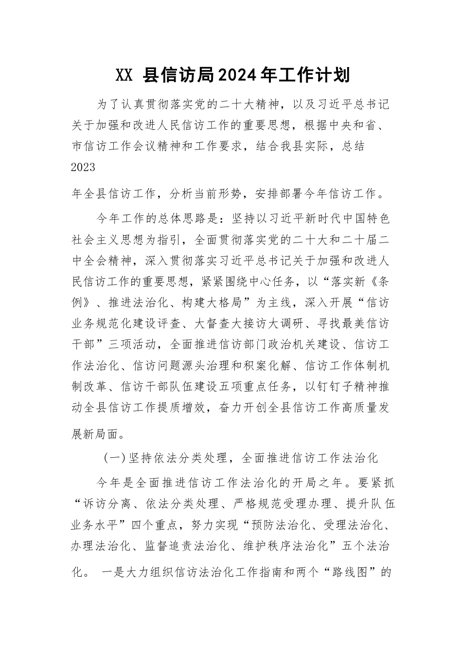 XX縣信訪局2024年工作計(jì)劃VIP免費(fèi)