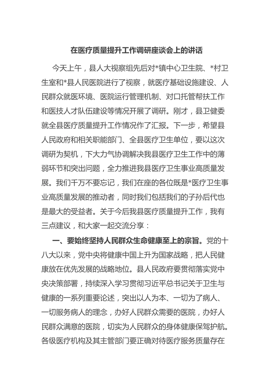 在醫(yī)療質(zhì)量提升工作調(diào)研座談會(huì)上的講話VIP免費(fèi)