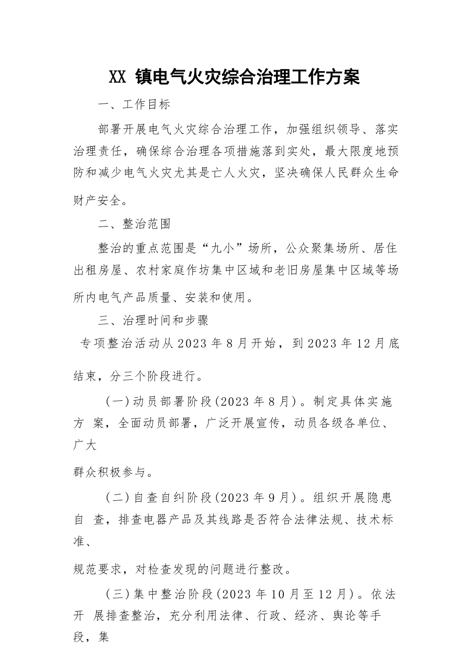 XX鎮(zhèn)電氣火災綜合治理工作方案VIP免費