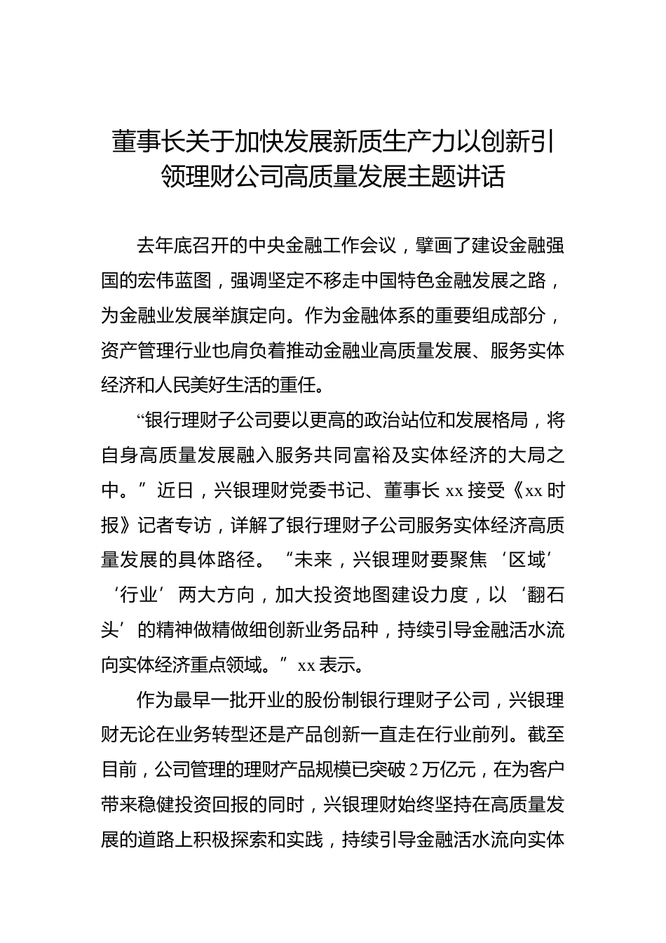 董事長(zhǎng)關(guān)于加快發(fā)展新質(zhì)生產(chǎn)力以創(chuàng)新引領(lǐng)理財(cái)公司高質(zhì)量發(fā)展主題講話(huà)VIP免費(fèi)