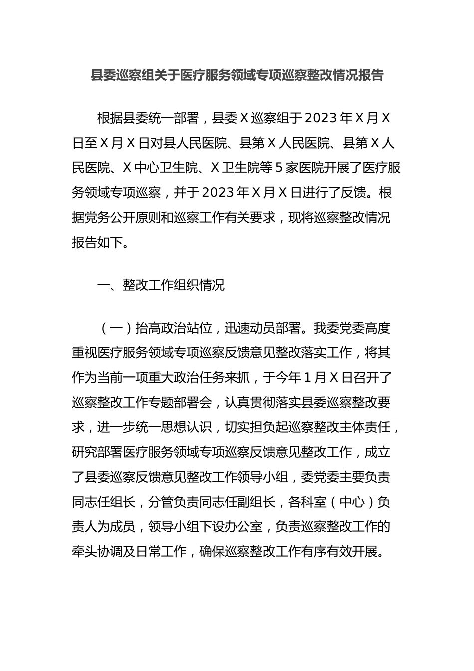 縣委巡察組關(guān)于醫(yī)療服務(wù)領(lǐng)域?qū)m?xiàng)巡察整改情況報(bào)告VIP免費(fèi)