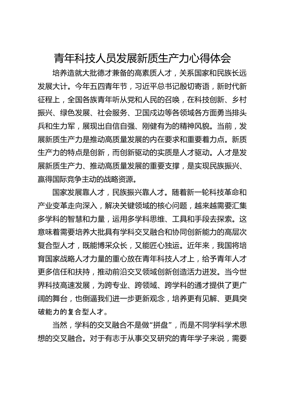 青年科技人員發(fā)展新質(zhì)生產(chǎn)力心得體會(huì)VIP免費(fèi)