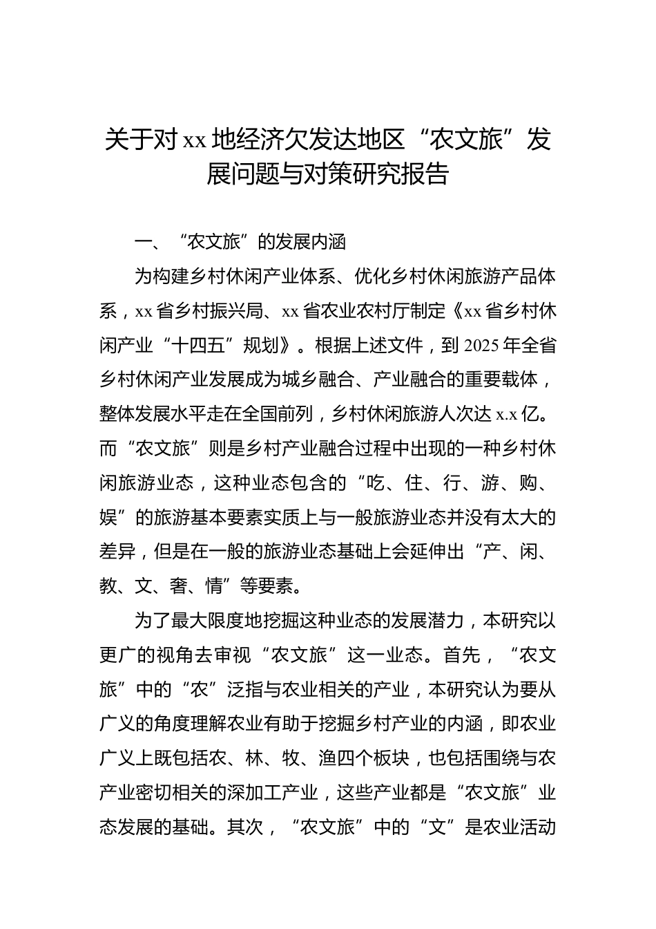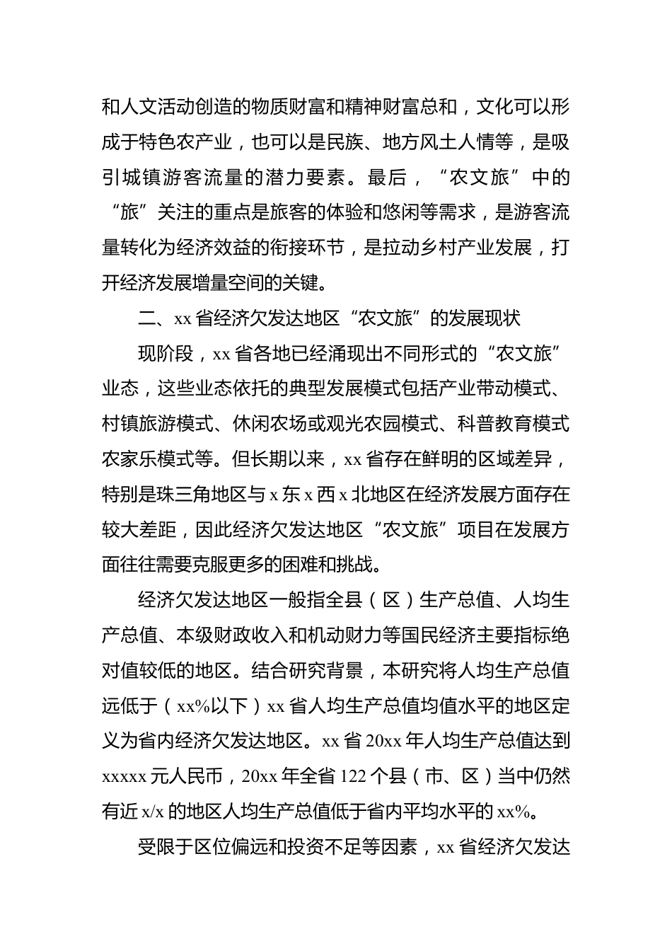 關(guān)于對xx地經(jīng)濟欠發(fā)達地區(qū)“農(nóng)文旅”發(fā)展問題與對策研究報告VIP免費