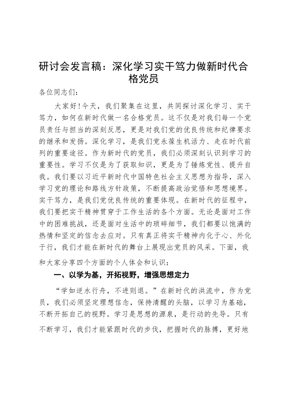 研討會發(fā)言稿:深化學習實干篤力做新時代合格黨員VIP免費
