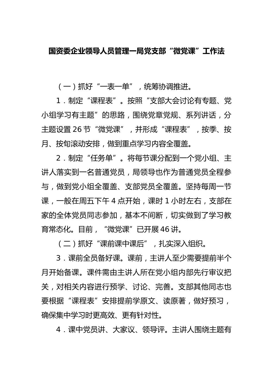 國資委企業(yè)領(lǐng)導(dǎo)人員管理一局黨支部“微黨課”工作法VIP免費(fèi)