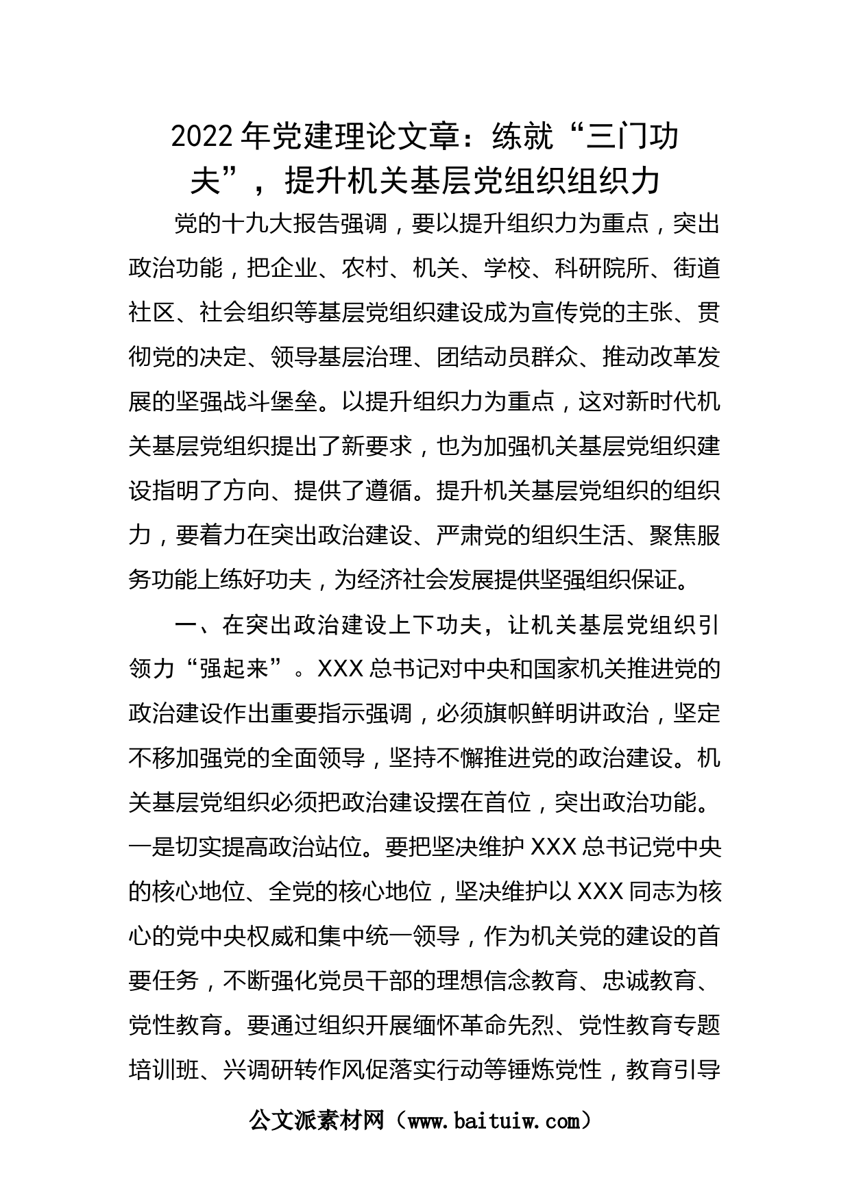 【組織黨建】2022年黨建理論文章:練就“三門功夫”,提升機關基層黨組織組織力VIP免費
