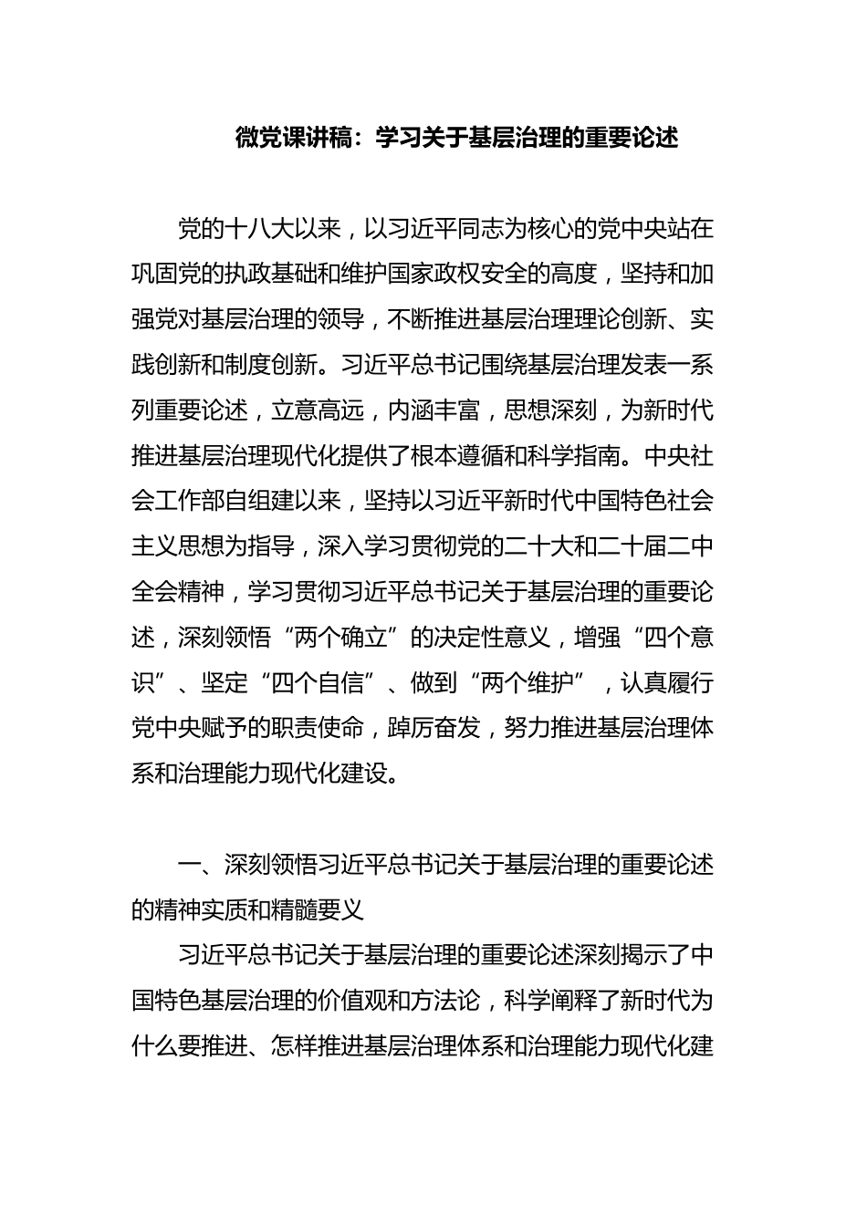 微黨課講稿:學(xué)習(xí)關(guān)于基層治理的重要論述VIP免費(fèi)