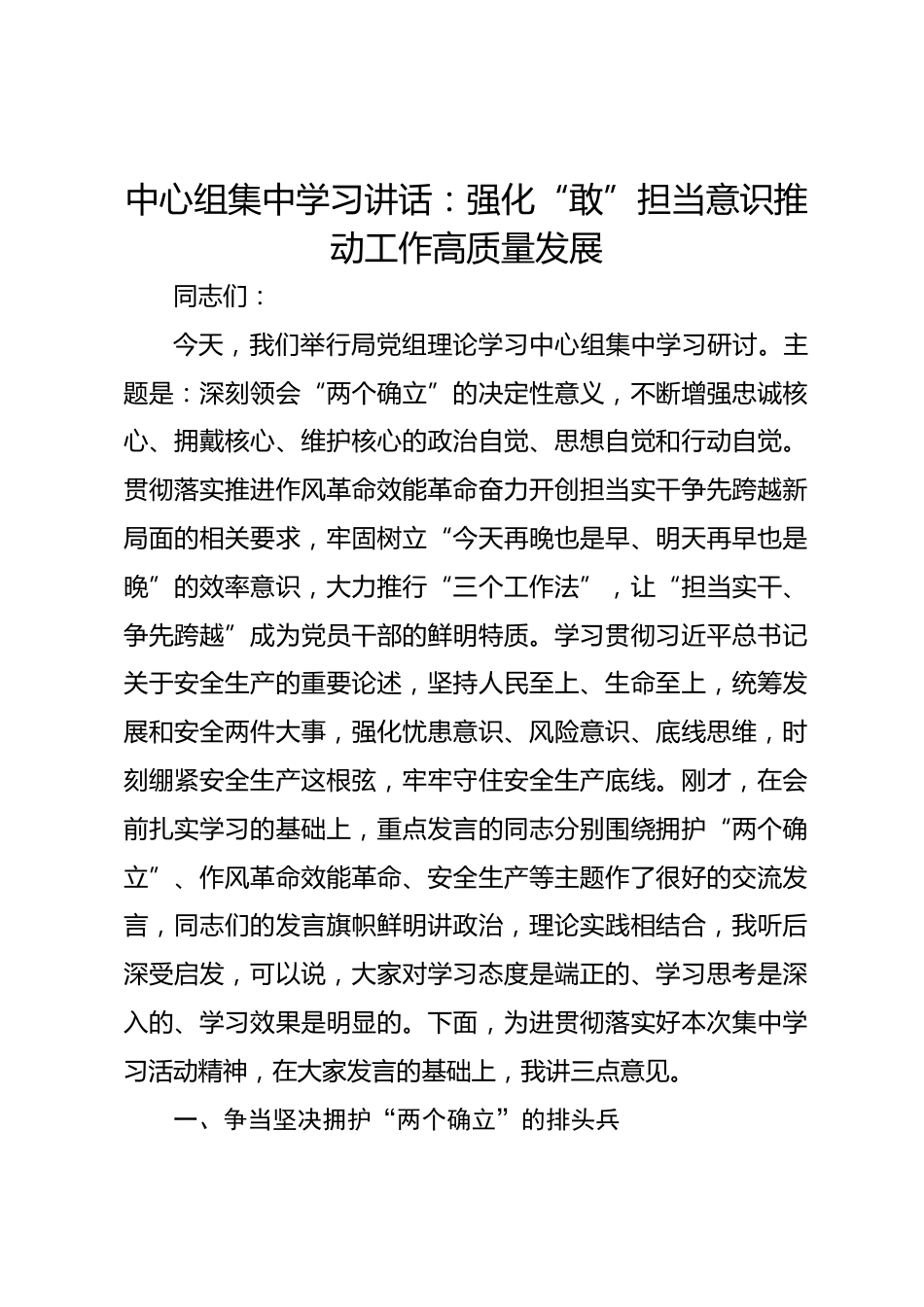 中心組集中學(xué)習(xí)講話: 強化“敢”擔(dān)當(dāng)意識 推動工作高質(zhì)量發(fā)展VIP免費