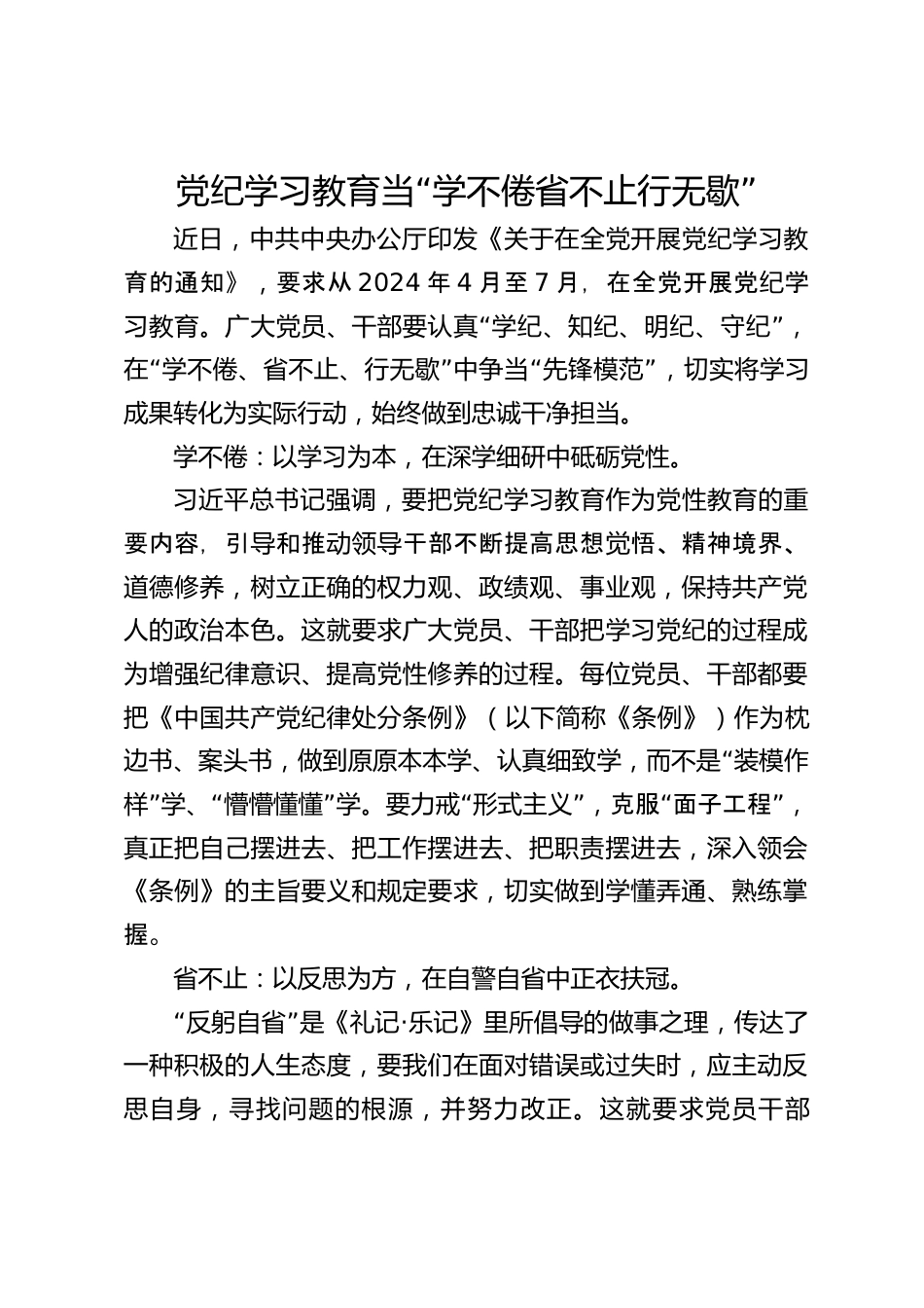 2024年黨課講話發(fā)言稿:黨紀(jì)學(xué)習(xí)教育當(dāng)“學(xué)不倦 省不止 行無歇”VIP免費(fèi)