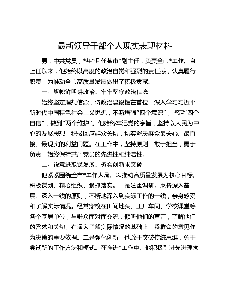 最新領(lǐng)導干部個人現(xiàn)實表現(xiàn)材料VIP免費