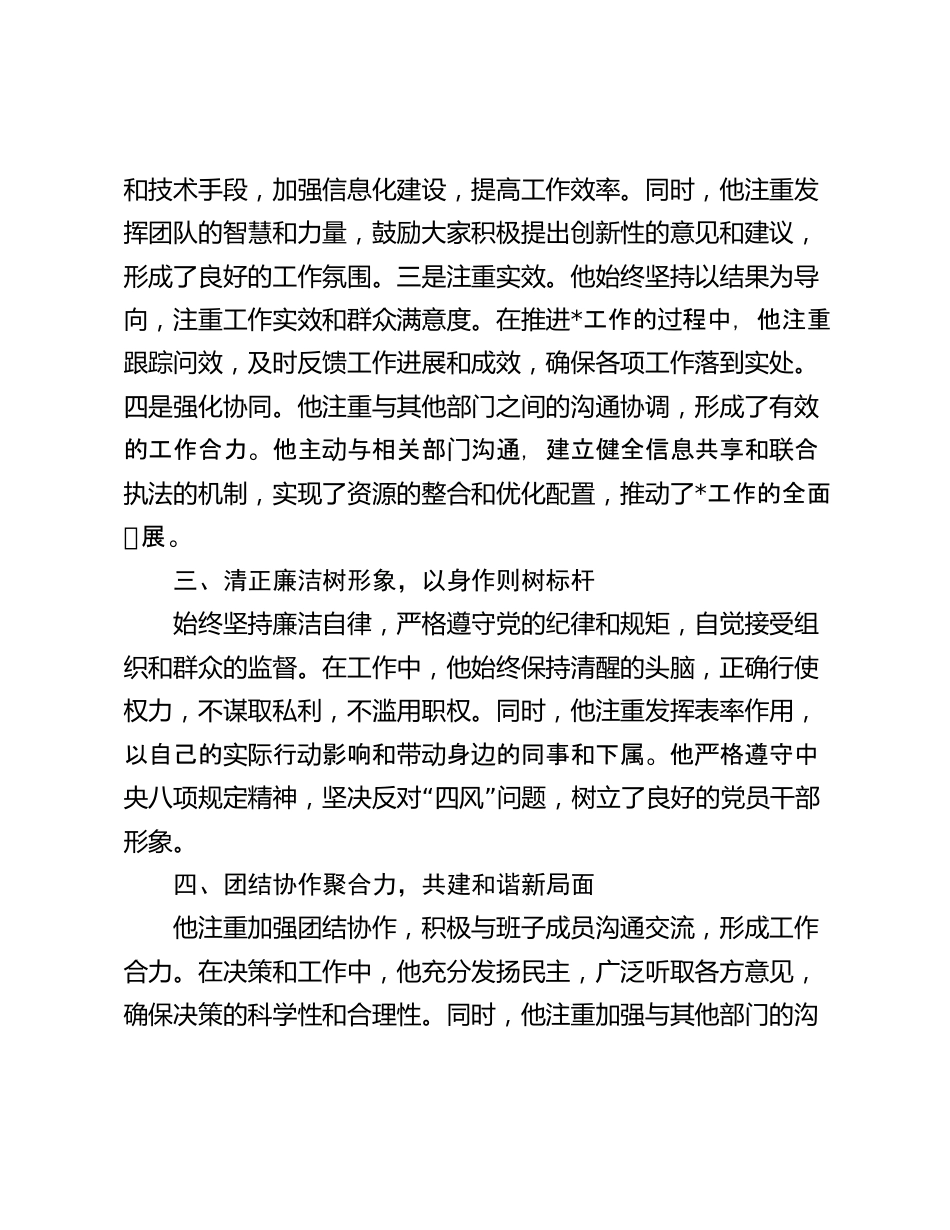 最新領(lǐng)導干部個人現(xiàn)實表現(xiàn)材料男,中共黨員,*年*月任某市*副主任,負責全市*工作,自上任以來,他始終以高度的政治自覺和強烈的責任感,認真履行職責,為推動全市高質(zhì)量發(fā)展做出了積極貢獻。一、旗幟鮮明講政治,牢牢堅守政治信念始終堅定理想信念,將政治建設(shè)擺在首位,深入學習習近平“”“新時代中國特色社會主義思想,不斷增強四個意識,堅定四個”“”自信,做到兩個維護。他始終牢記黨的宗旨,堅持以人民為中心的發(fā)展思想,積極回應群眾關(guān)切,切實解決群眾最關(guān)心、最直接、最現(xiàn)實的利益問題。在工作中,堅持原則,敢于擔當,勇于負責,始終保持共產(chǎn)黨員的先進性和...