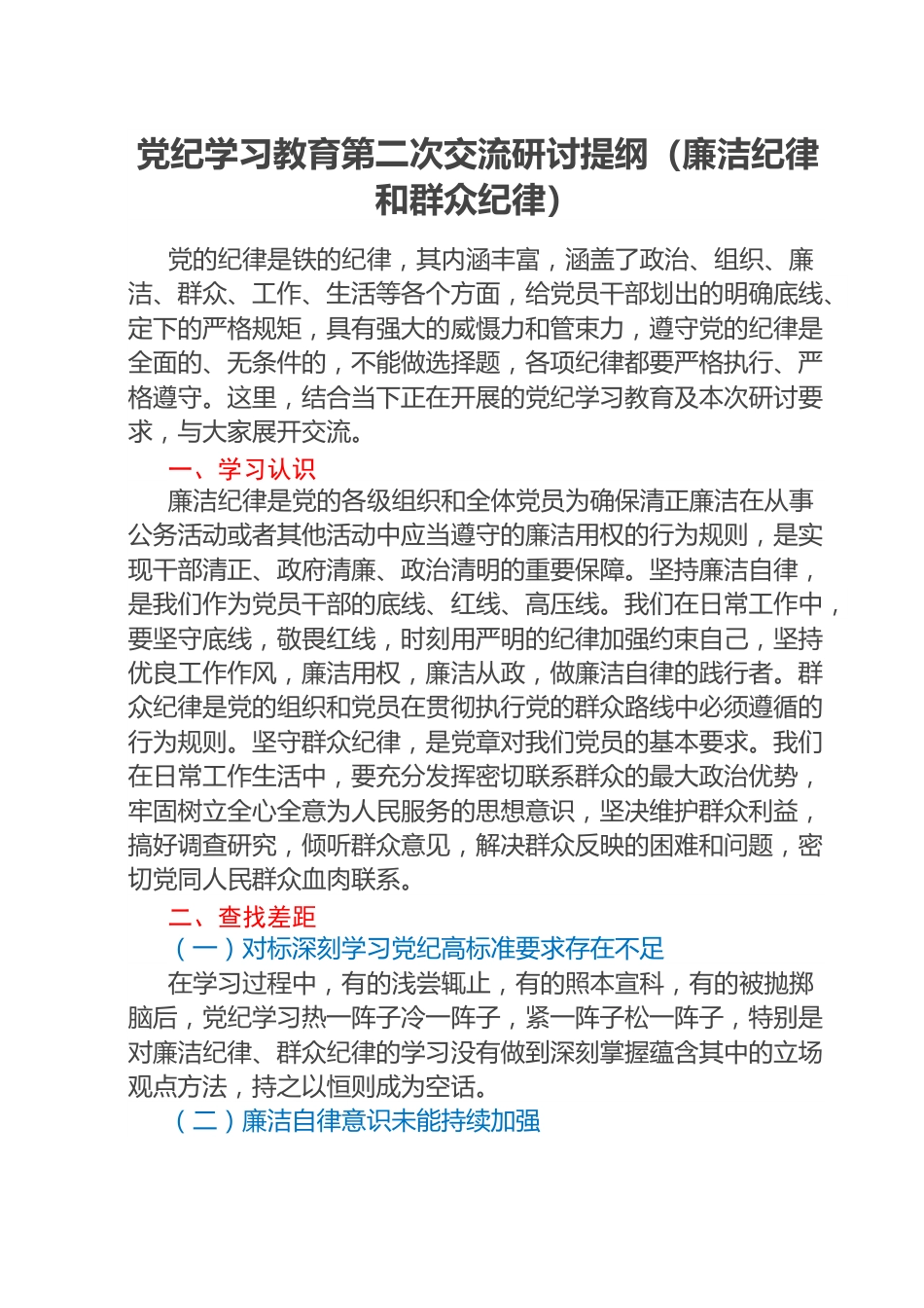 黨紀(jì)學(xué)習(xí)教育第二次交流研討提綱(廉潔紀(jì)律和群眾紀(jì)律)VIP免費(fèi)