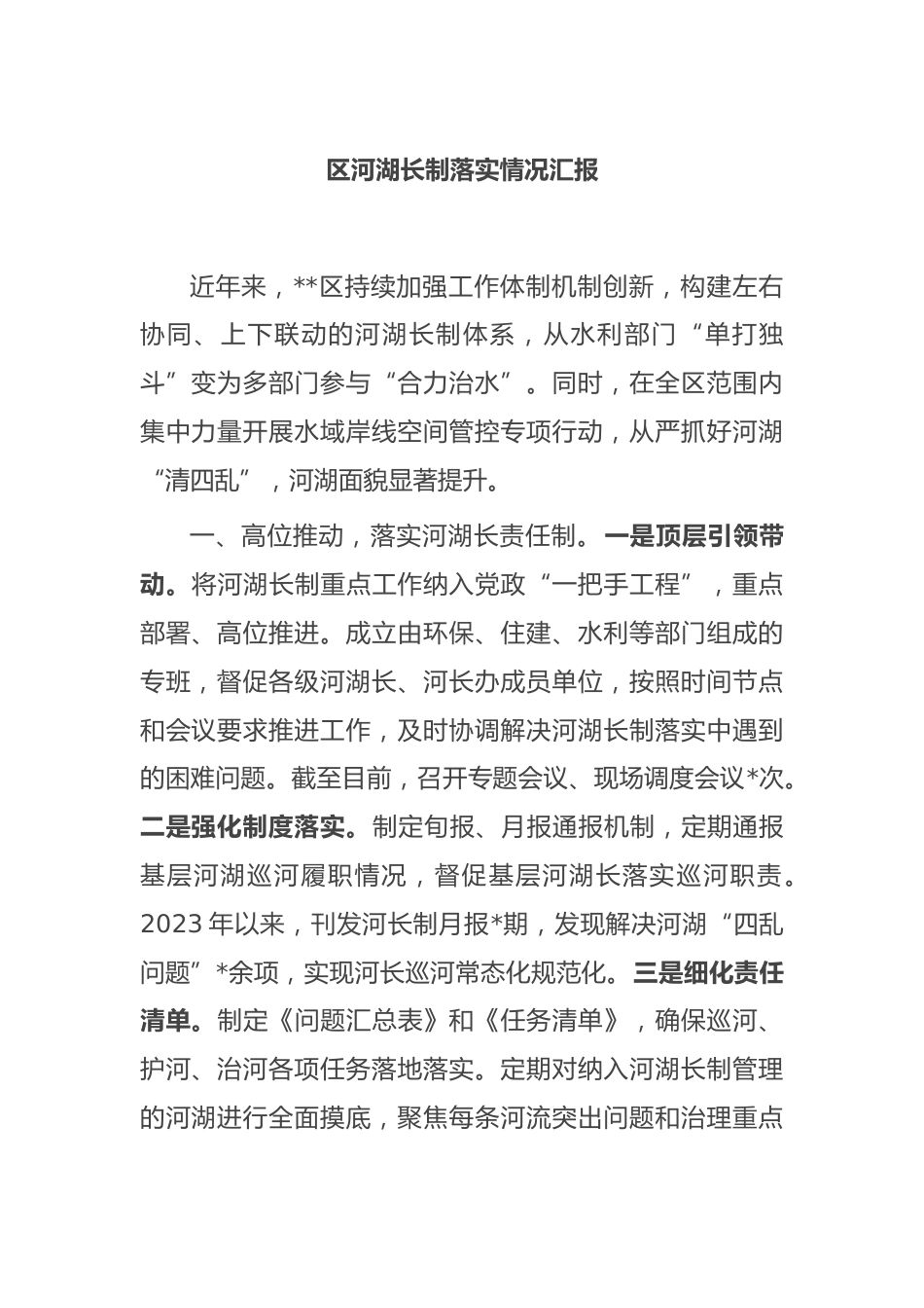 區(qū)河湖長(zhǎng)制落實(shí)情況匯報(bào)VIP免費(fèi)