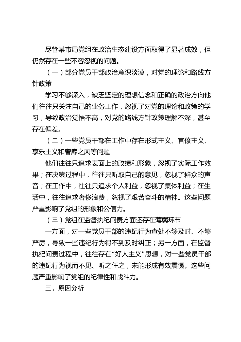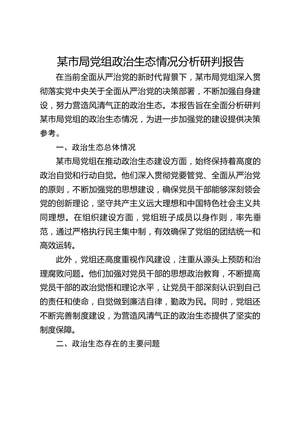 某市局黨組政治生態(tài)情況分析研判報告VIP免費