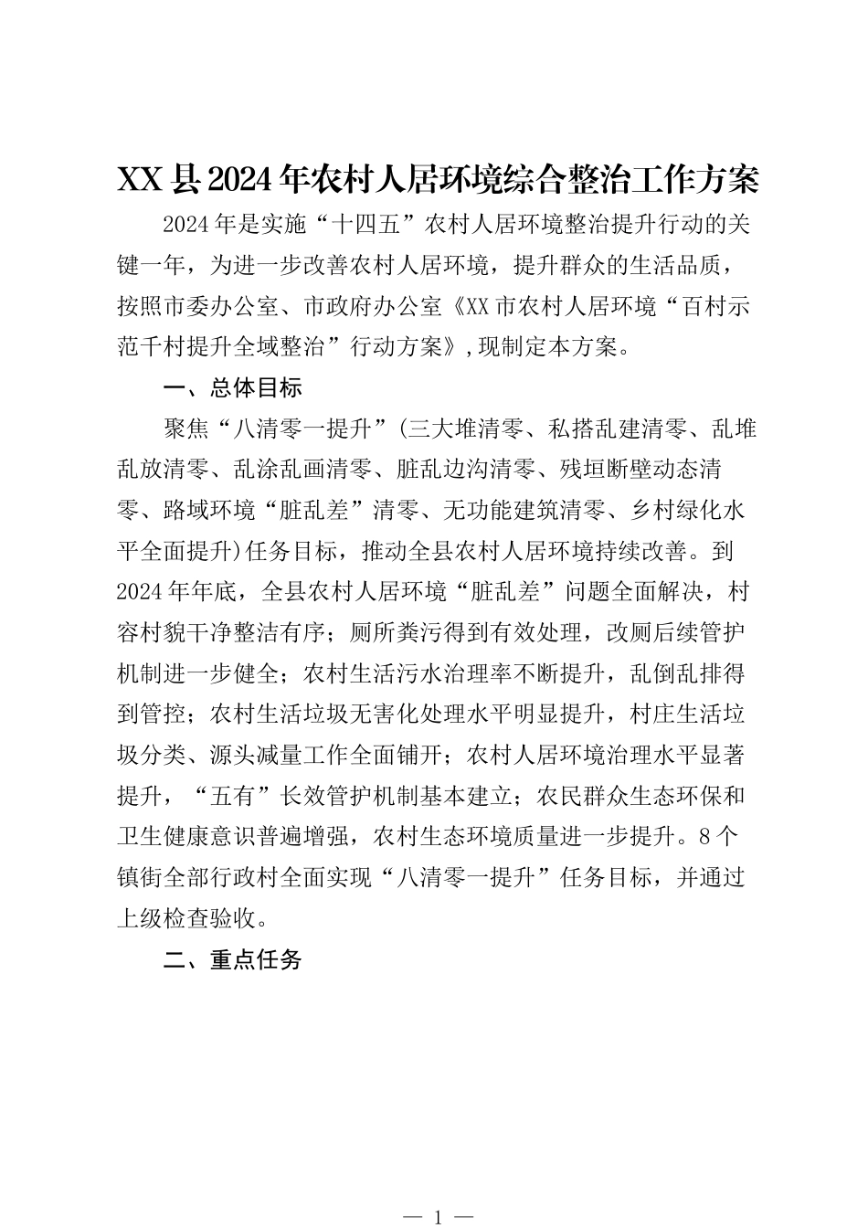 XX縣2024年農(nóng)村人居環(huán)境綜合整治工作方案VIP免費(fèi)