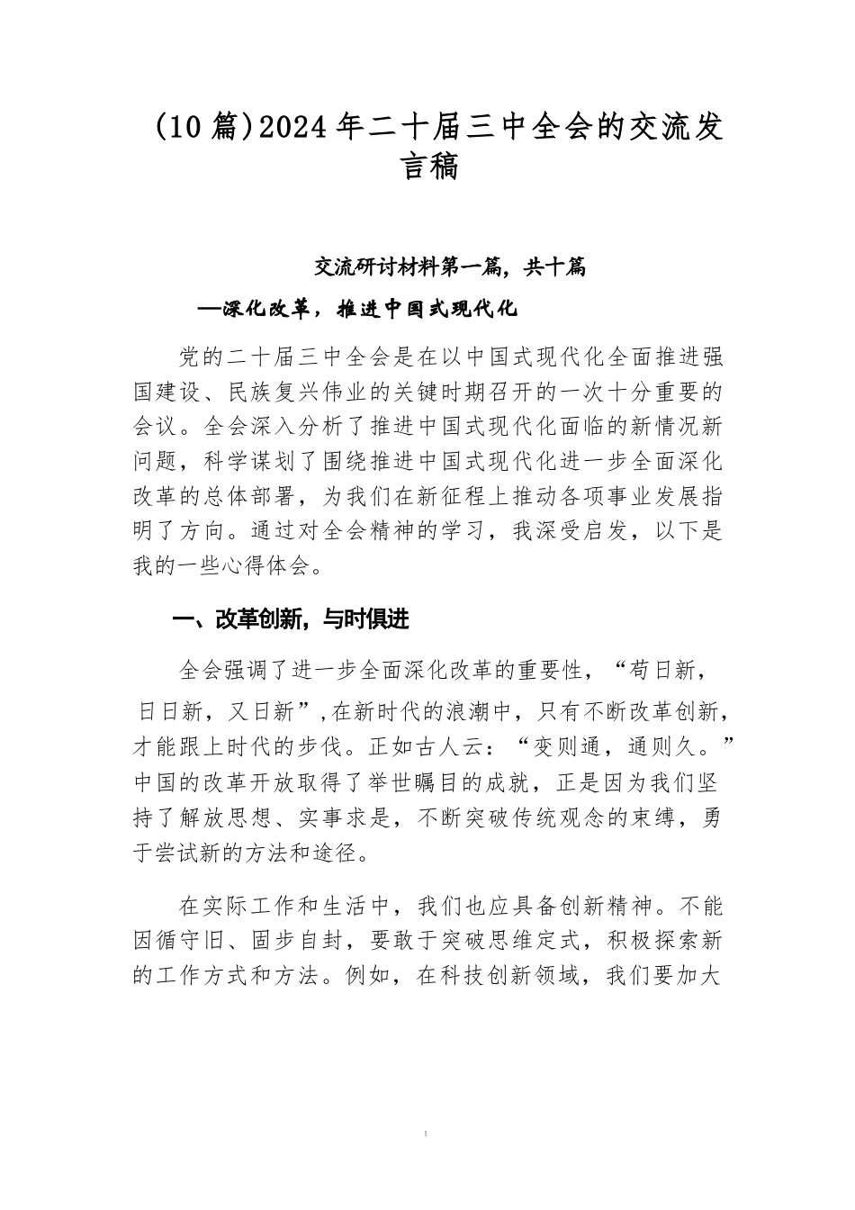 (10篇)2024年二十屆三中全會的交流發(fā)言稿VIP免費(fèi)