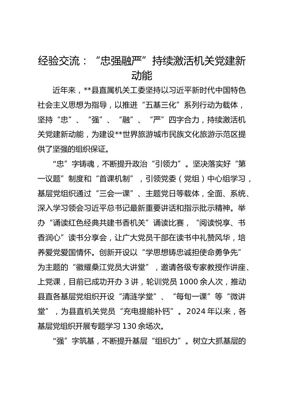 經(jīng)驗(yàn)交流:“忠強(qiáng)融嚴(yán)”持續(xù)激活機(jī)關(guān)黨建新動(dòng)能VIP免費(fèi)
