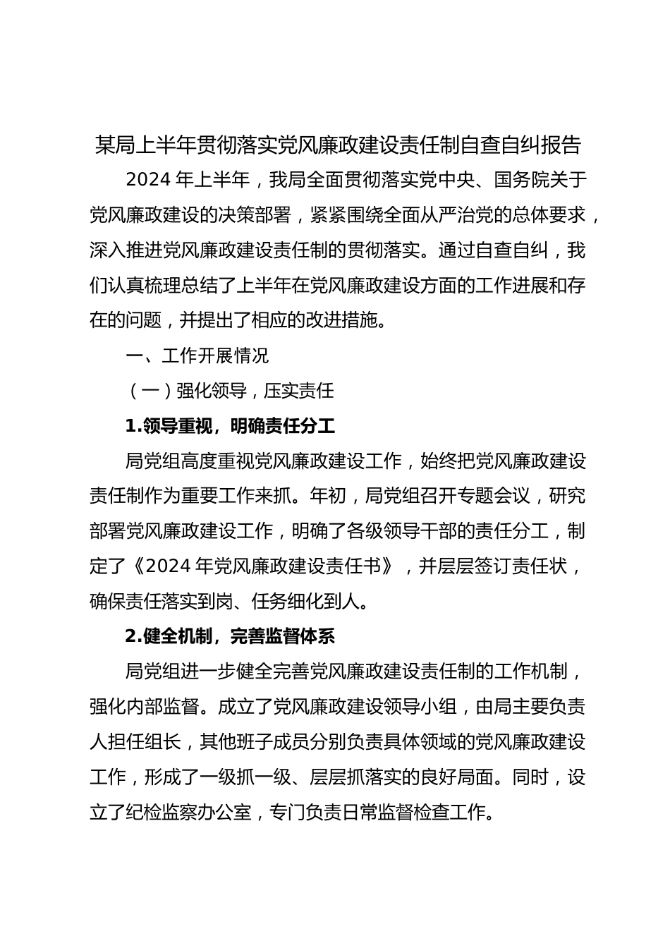 某局上半年貫徹落實黨風廉政建設責任制自查自糾報告VIP免費