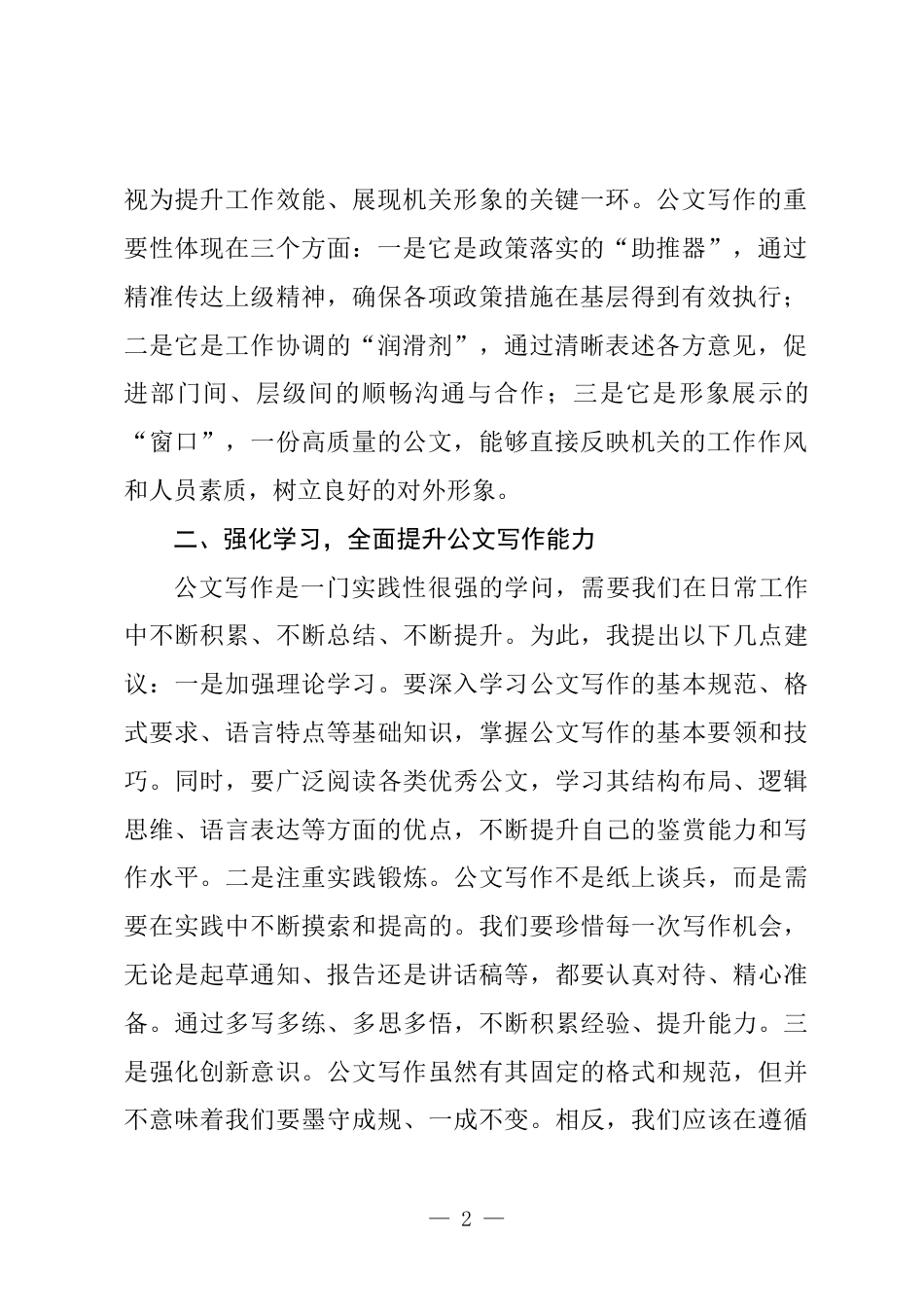 在全縣辦公室系統(tǒng)公文寫作培訓(xùn)開班式上的講話在全縣辦公室系統(tǒng)公文寫作培訓(xùn)開班式上的講話各位同事、同志們:大家上午好!今天,我們齊聚一堂,共同拉開全縣辦公室系統(tǒng)公文寫作培訓(xùn)的帷幕。在此,我謹代表縣委,向遠道而來、積極參與此次培訓(xùn)的各位同仁表示熱烈的歡迎和衷心的感謝!同時,也對本次培訓(xùn)班的順利舉辦致以最誠摯的祝賀!公文寫作作為辦公室工作的核心技能之一,不僅關(guān)乎信息的準確傳達,更直接影響到政策執(zhí)行的效果與機關(guān)形象。因此,提升公文寫作能力,對于每一位辦公室工作者而言,都是一項重要而緊迫的任務(wù)。下面,我就此談幾點看法和期望。一、提高站位...