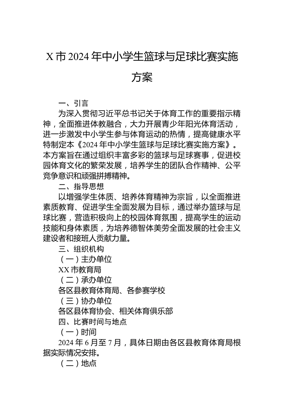 X市2024年中小學(xué)生籃球與足球比賽實施方案VIP免費