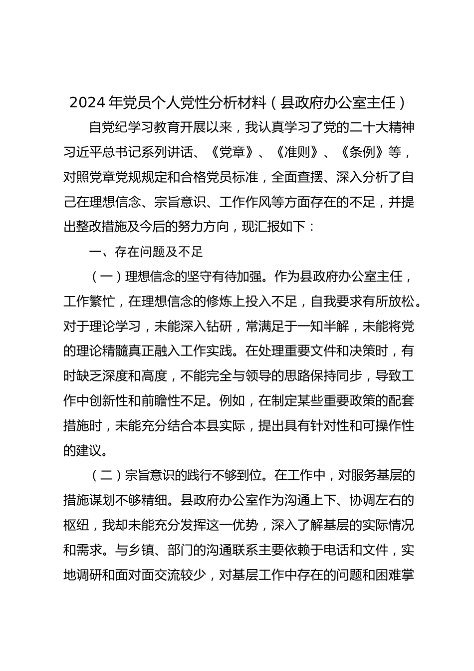 2024年黨員個人黨性分析材料(縣政府辦公室主任)VIP免費