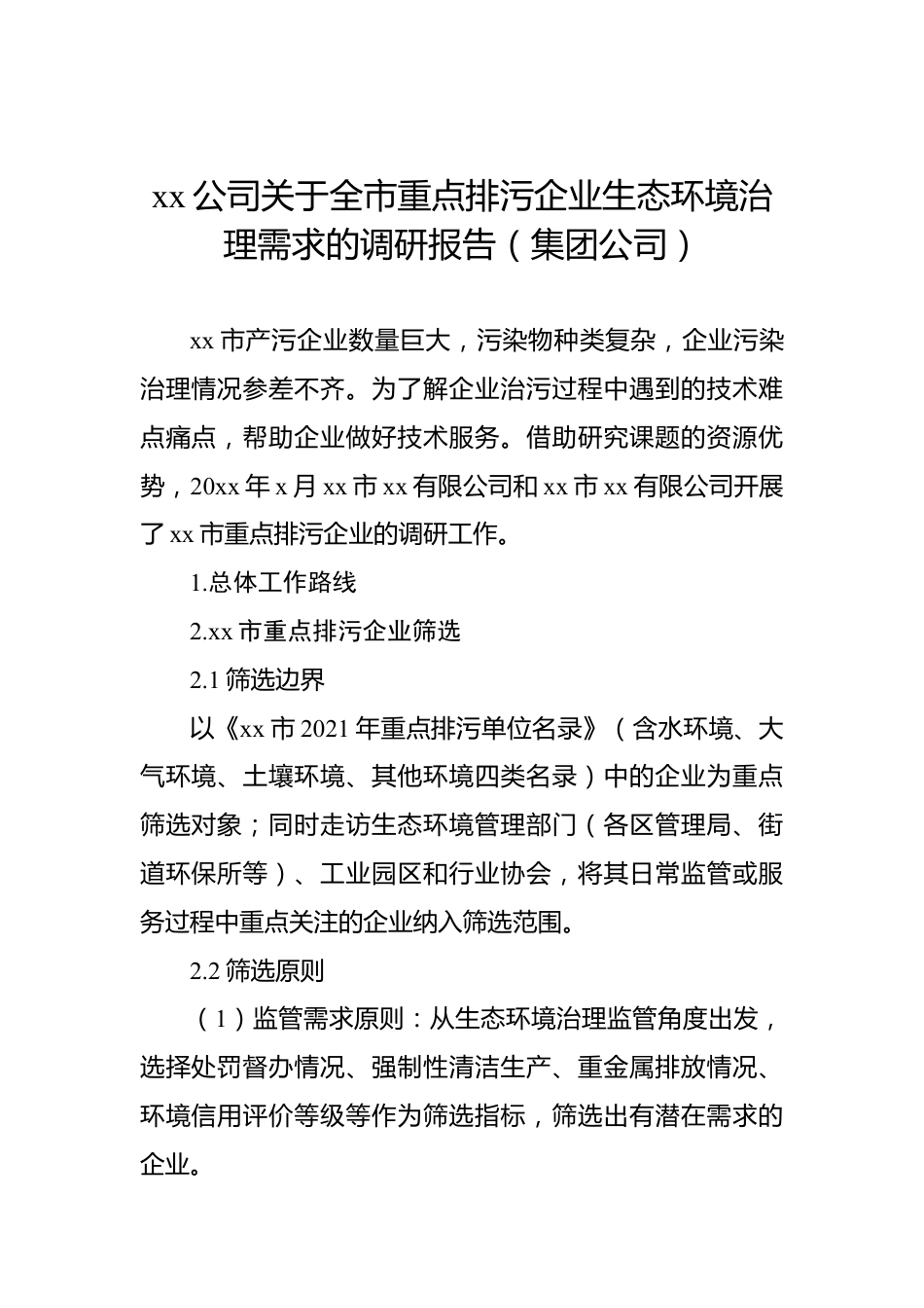 xx公司關(guān)于全市重點(diǎn)排污企業(yè)生態(tài)環(huán)境治理需求的調(diào)研報(bào)告(集團(tuán)公司)VIP免費(fèi)