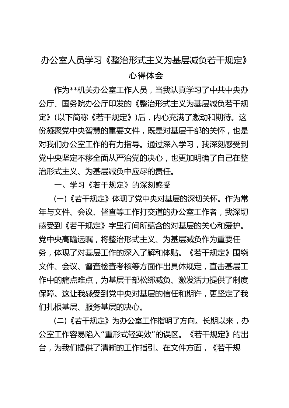 基層辦公室工作者機(jī)關(guān)辦公室人員學(xué)習(xí)《整治形式主義為基層減負(fù)若干規(guī)定》心得體會(huì)VIP免費(fèi)