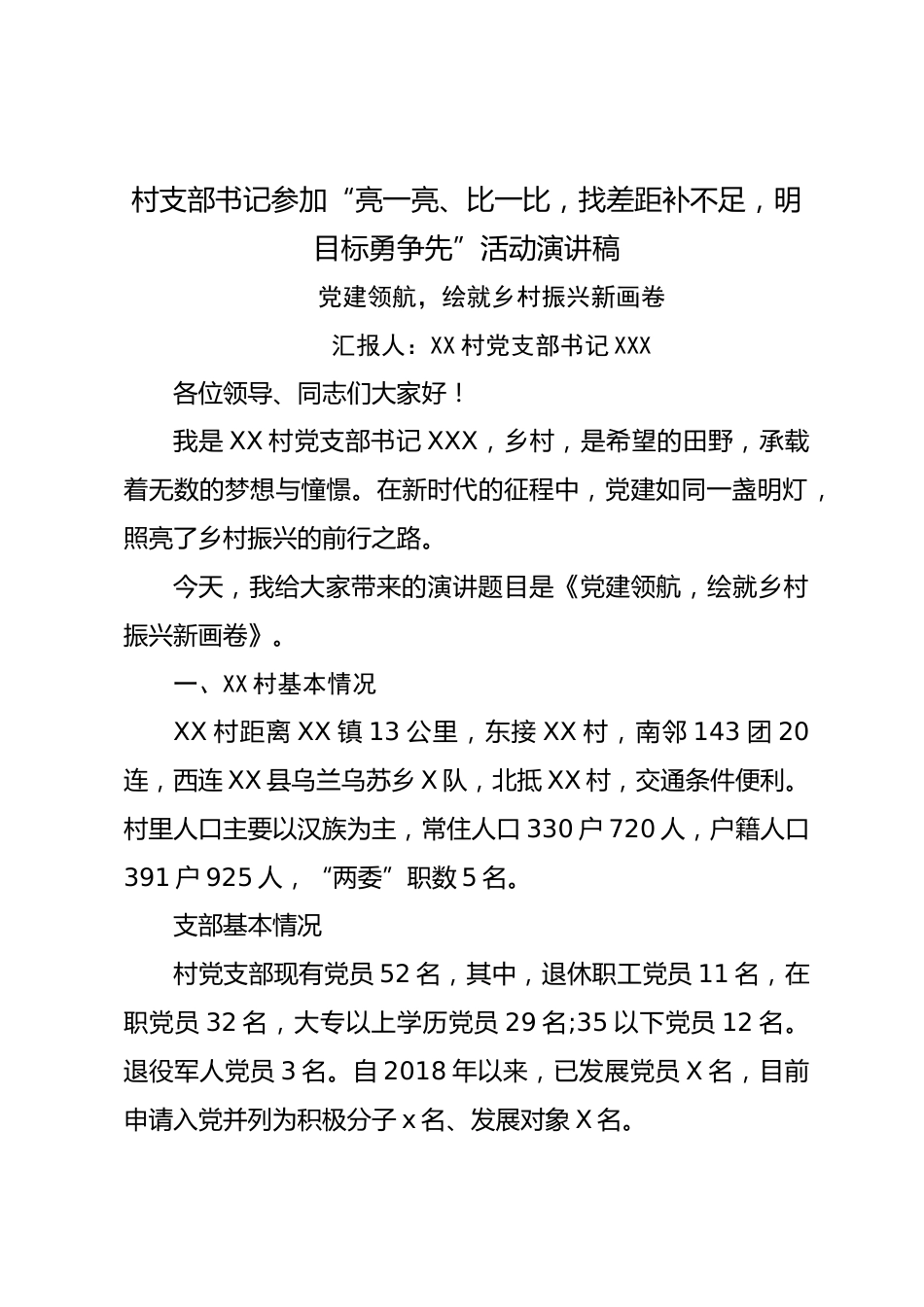 2024年村支部書記參加“亮一亮、比一比,找差距補(bǔ)不足,明目標(biāo)勇爭(zhēng)先”活動(dòng)演講稿VIP免費(fèi)
