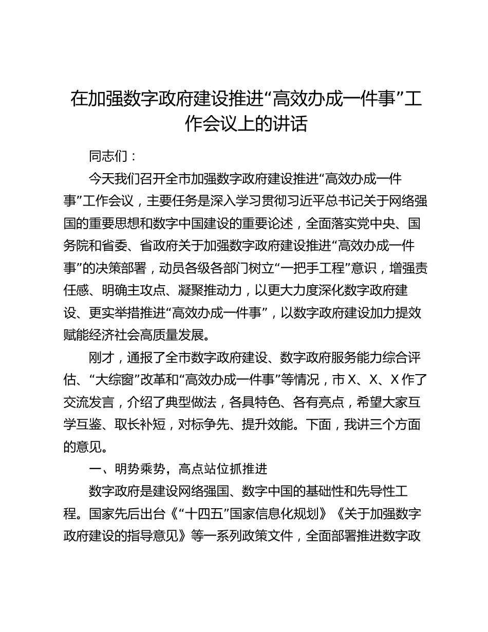在加強數(shù)字政府建設推進“高效辦成一件事”工作會議上的講話VIP免費