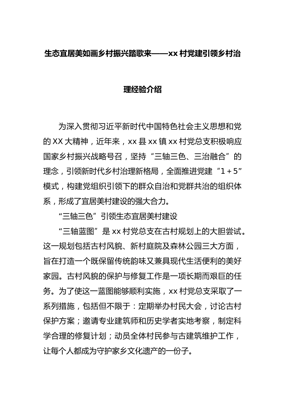 生態(tài)宜居美如畫鄉(xiāng)村振興踏歌來——xx村黨建引領鄉(xiāng)村治理經(jīng)驗介紹VIP免費