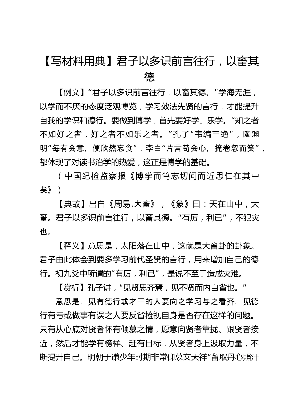 公文寫作:【寫材料用典】君子以多識(shí)前言往行,以畜其德VIP免費(fèi)