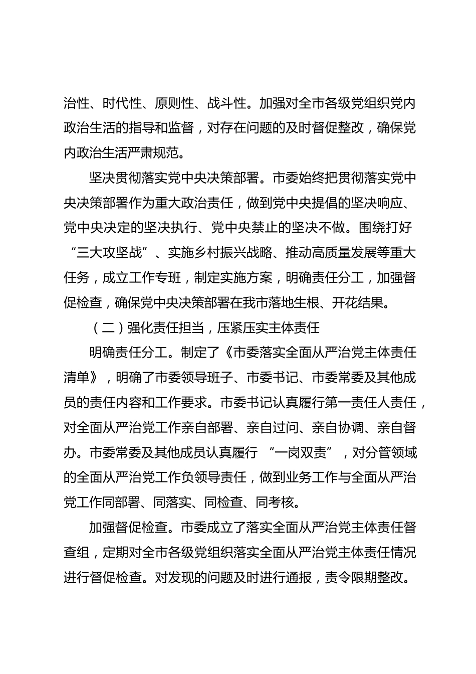 市黨委落實(shí)全面從嚴(yán)治黨主體責(zé)任情況報(bào)告VIP免費(fèi)